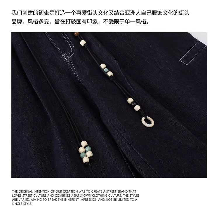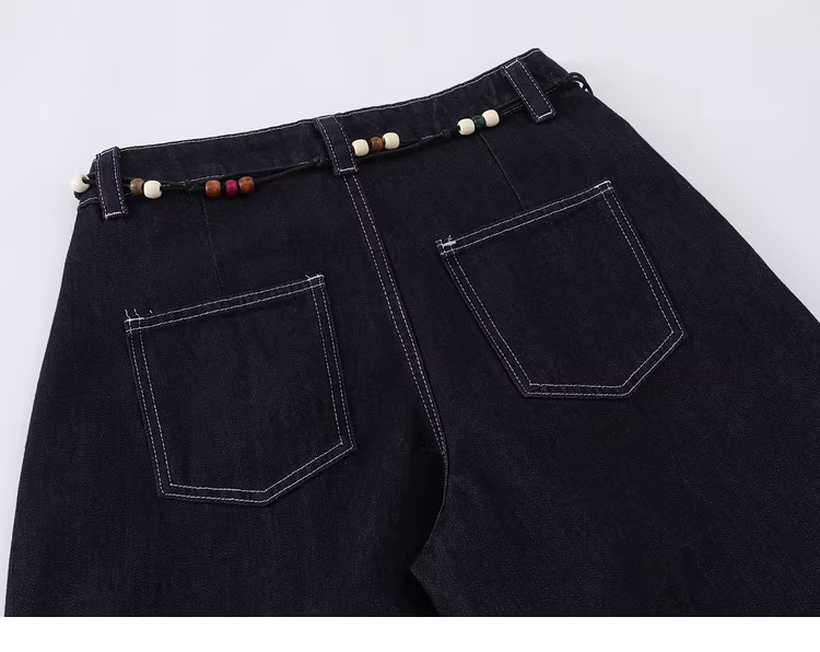 - Từ sao Hỏa Lá mùa thu rụng Thiết kế cổ điển kiểu Mỹ Quần Scimitar dáng rộng Quần denim ống rộng thông thường