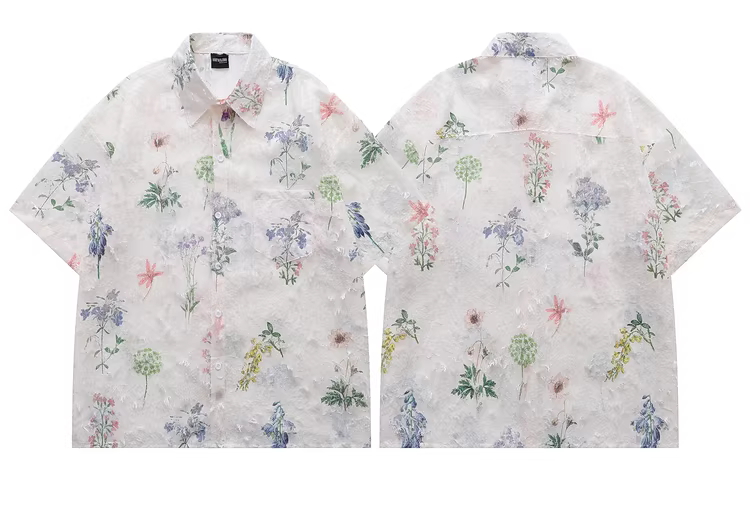 Từ sao Hỏa Mỗi bông hoa là một tác phẩm nghệ thuật Thiết kế theo phong cách cổ điển Hồng Kông in hoa áo sơ mi ngắn tay dáng rộng theo xu hướng quốc gia dành cho mùa hè