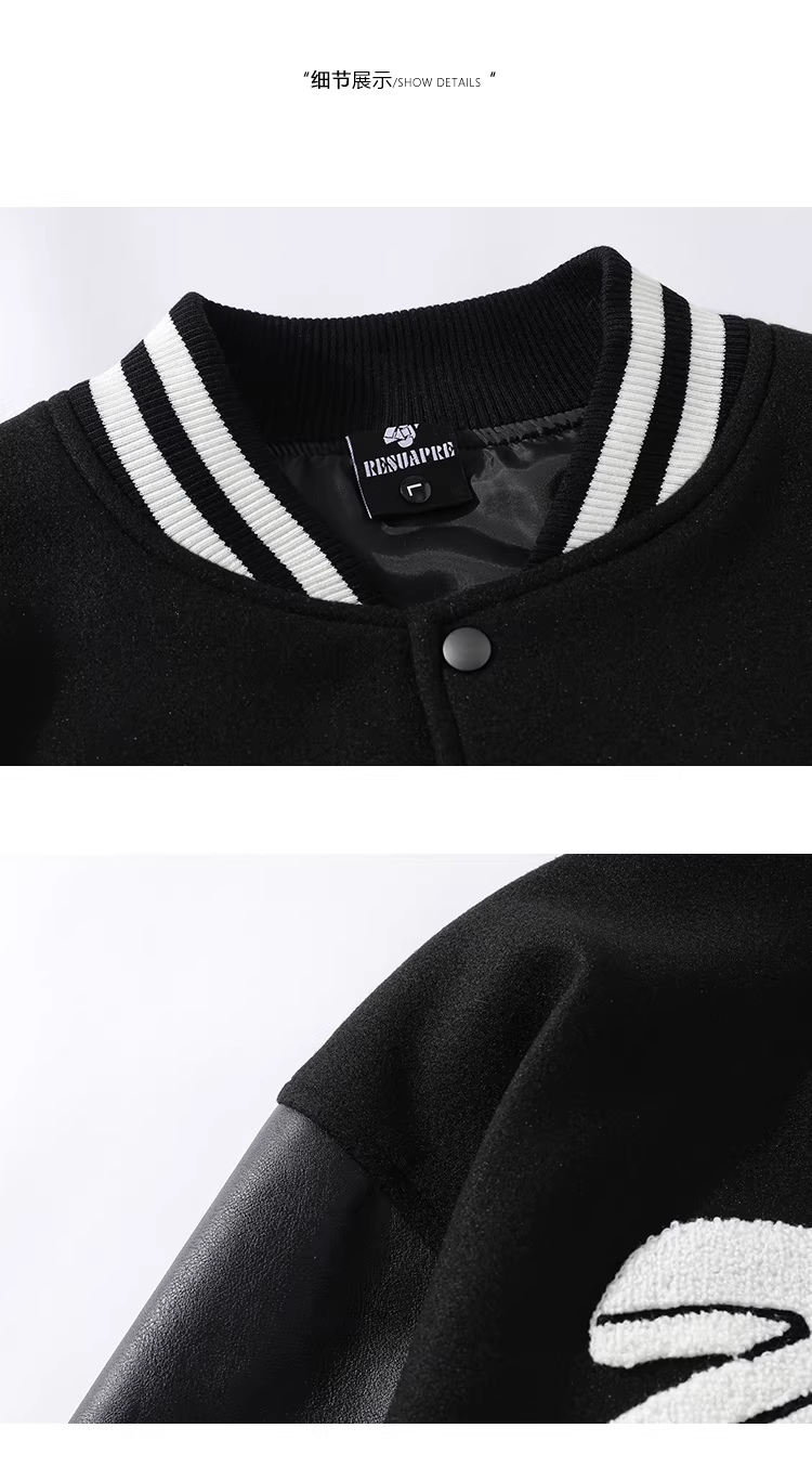 Từ sao Hỏa, nhìn lại quá khứ, phong cách trẻ trung và lười biếng kiểu Mỹ, áo khoác bóng chày tay áo bằng da ghép mảnh, áo khoác rộng.