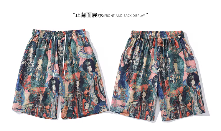 - Từ sao Hỏa, phong cách tranh tường tinh tế, xu hướng quốc gia, thương hiệu cổ điển, in họa tiết toàn thân, quần short thường ngày, quần short đi biển rộng rãi