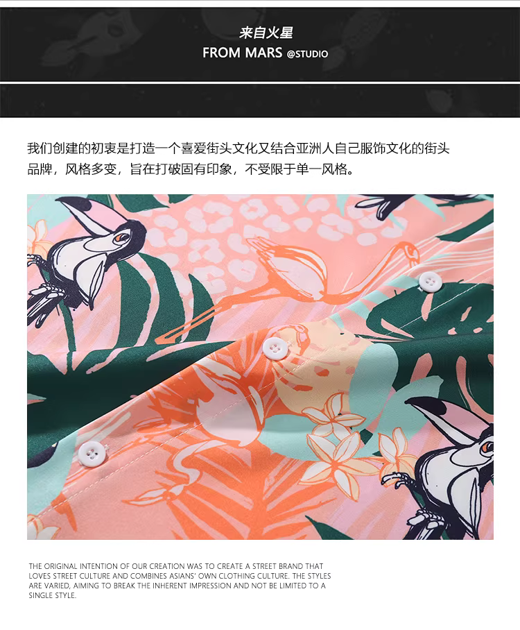 - Từ sao Hỏa, thời gian nghỉ dưỡng thư giãn, chim hồng hạc hồng phong cách Hawaii, áo sơ mi ngắn tay kiểu dáng rộng rãi, hợp thời trang, thương hiệu nổi tiếng