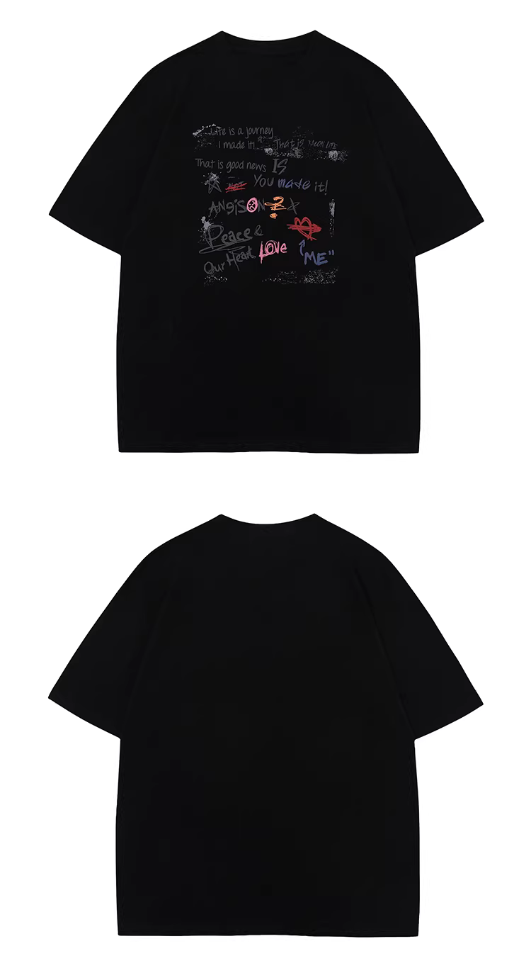 - Từ sao Hỏa viết lại mọi thứ Phong cách Hồng Kông Đường phố sang trọng Chữ Graffiti Áo thun ngắn tay cổ tròn dáng rộng giản dị hợp thời trang