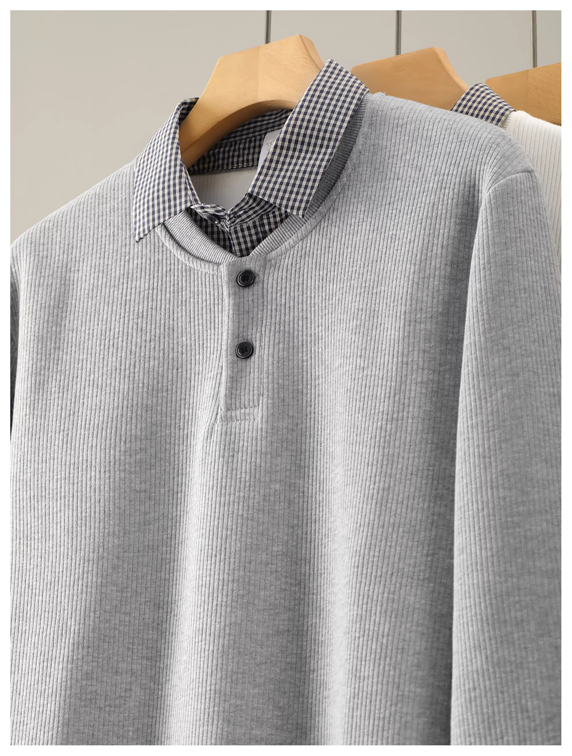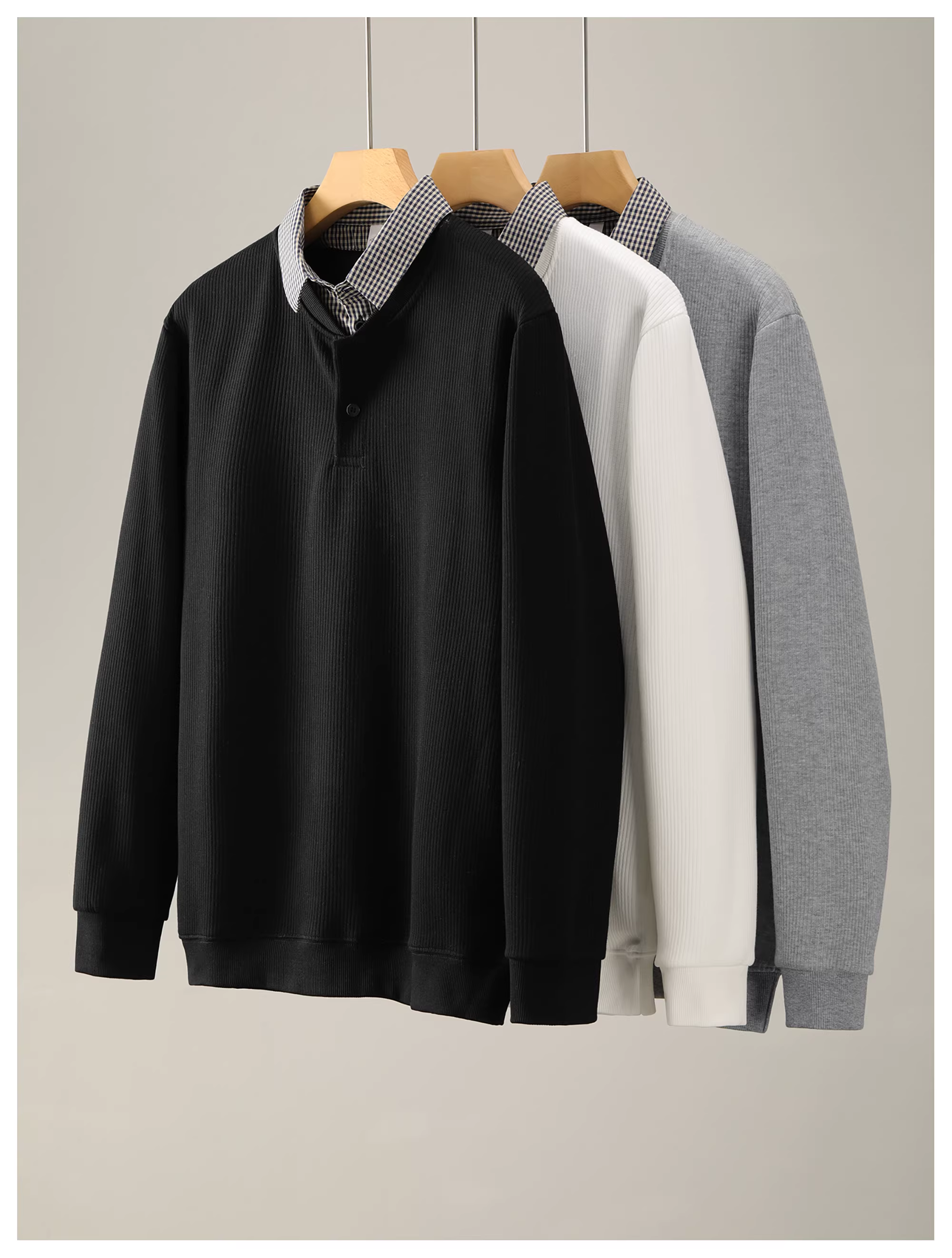 - Ưu đãi đặc biệt: Áo len dệt kim phối họa tiết ca rô phong cách Hàn Quốc, cổ áo kiểu áo sơ mi, dành cho mùa thu đông, chất liệu giả hai lớp, tay dài dành cho nam.