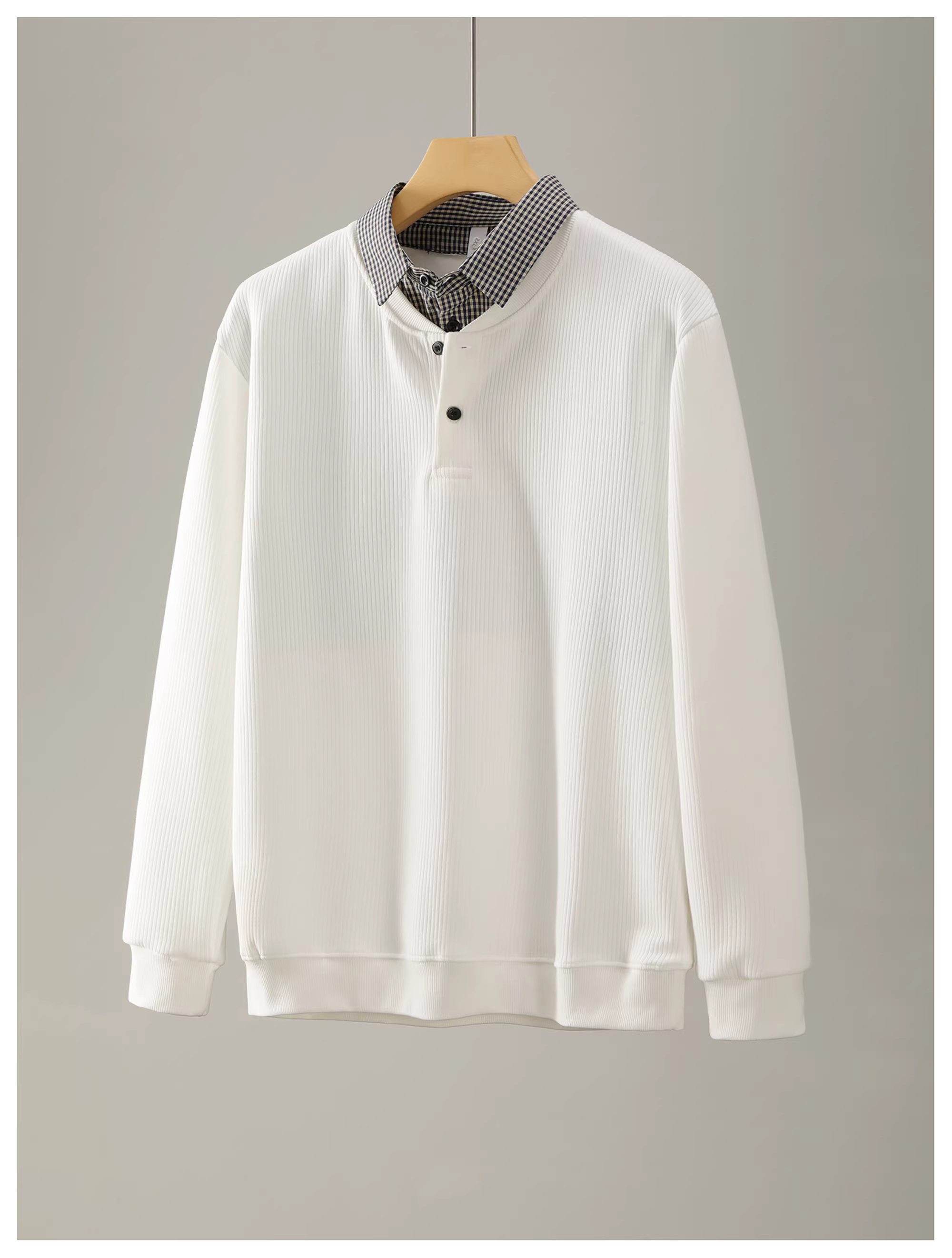 Ưu đãi đặc biệt: Áo len dệt kim phối họa tiết ca rô phong cách Hàn Quốc, cổ áo kiểu áo sơ mi, dành cho mùa thu đông, chất liệu giả hai lớp, tay dài dành cho nam.