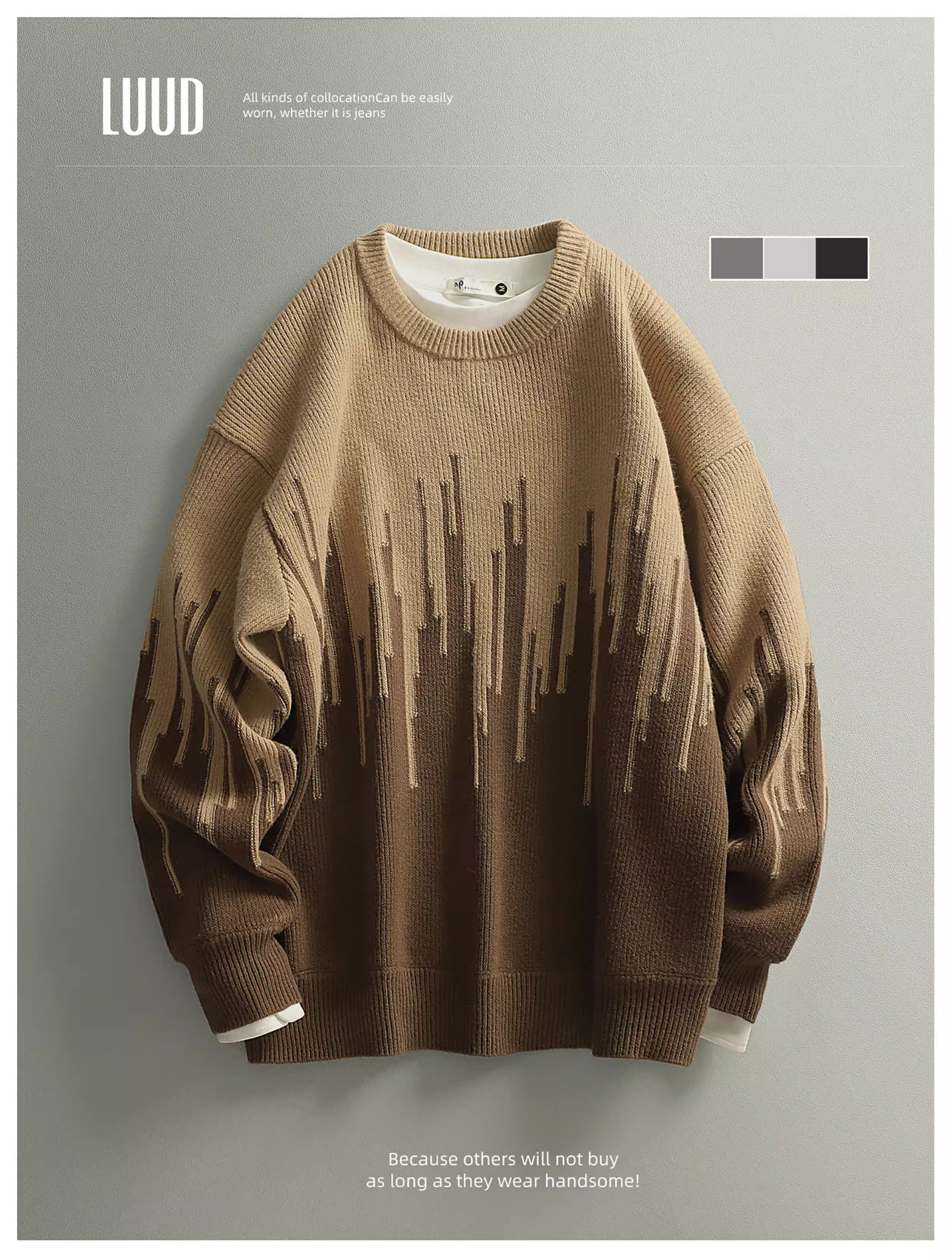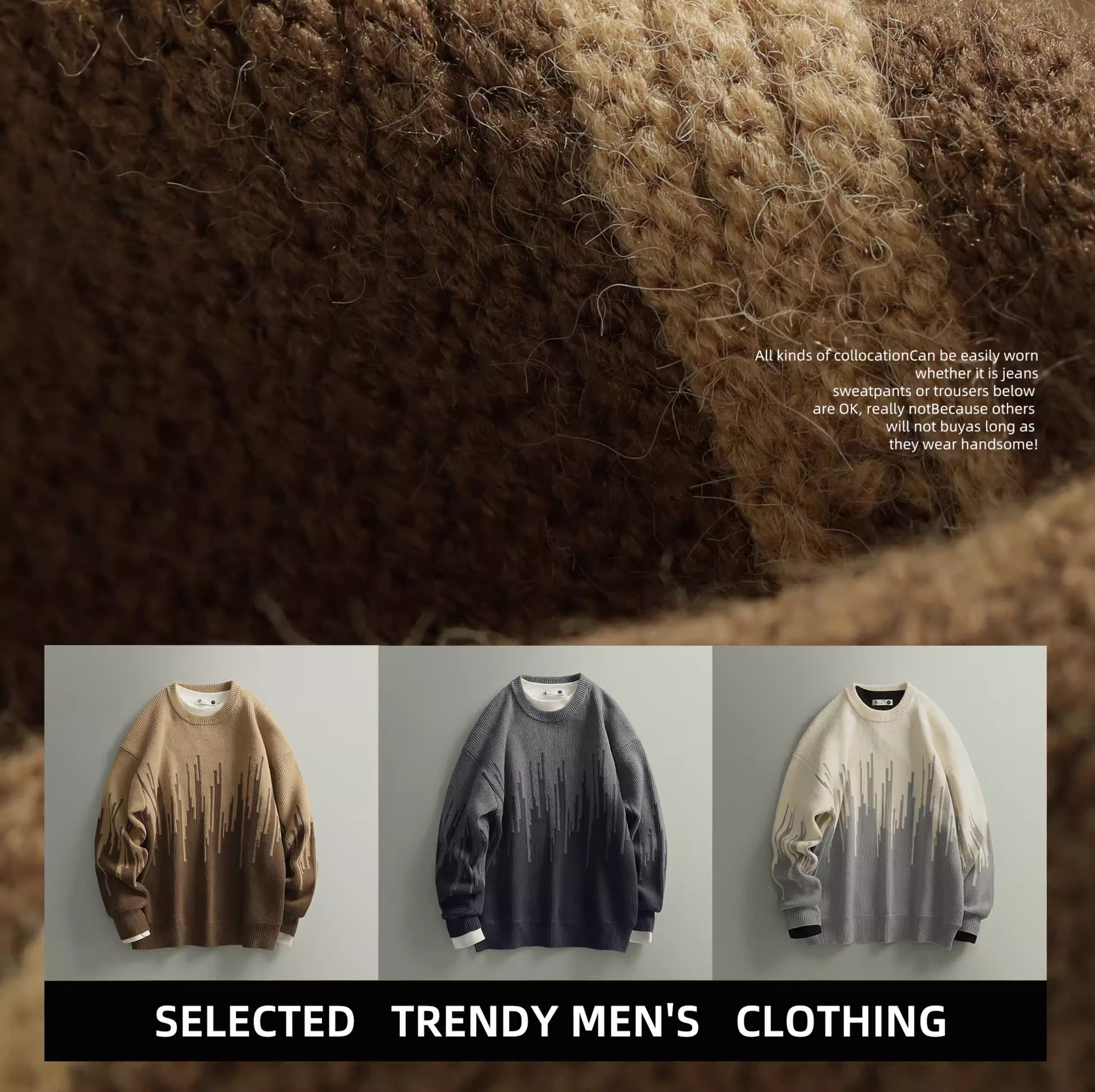 Ưu đãi đặc biệt: Áo len nam chất liệu jacquard phối màu độc đáo và sáng tạo, kiểu dáng thời thượng đô thị, cổ tròn, tay dài.