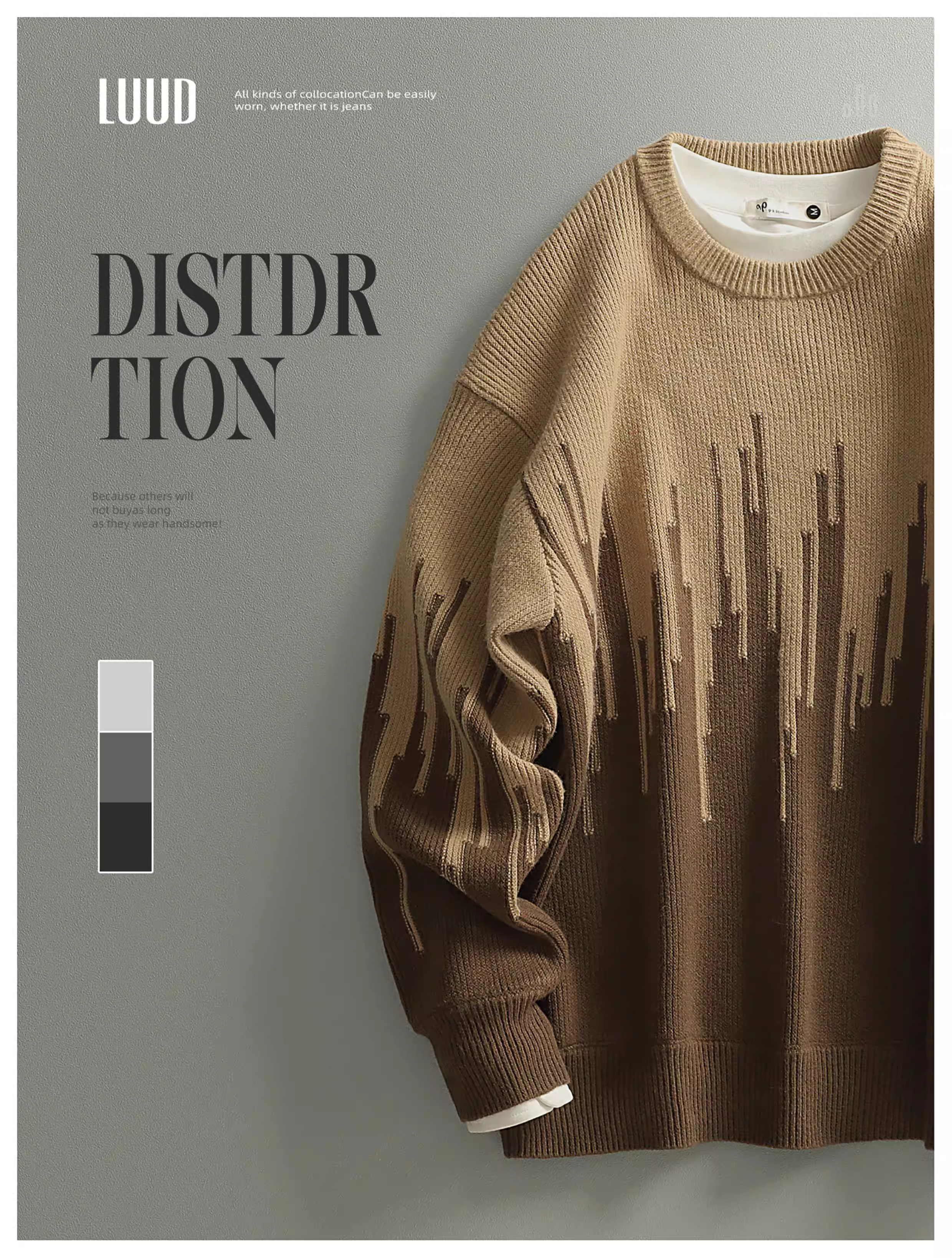 - Ưu đãi đặc biệt: Áo len nam chất liệu jacquard phối màu độc đáo và sáng tạo, kiểu dáng thời thượng đô thị, cổ tròn, tay dài.