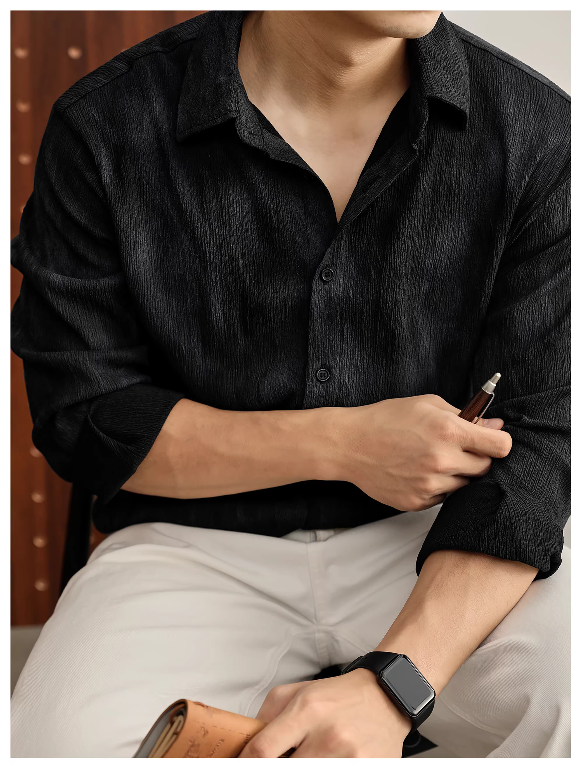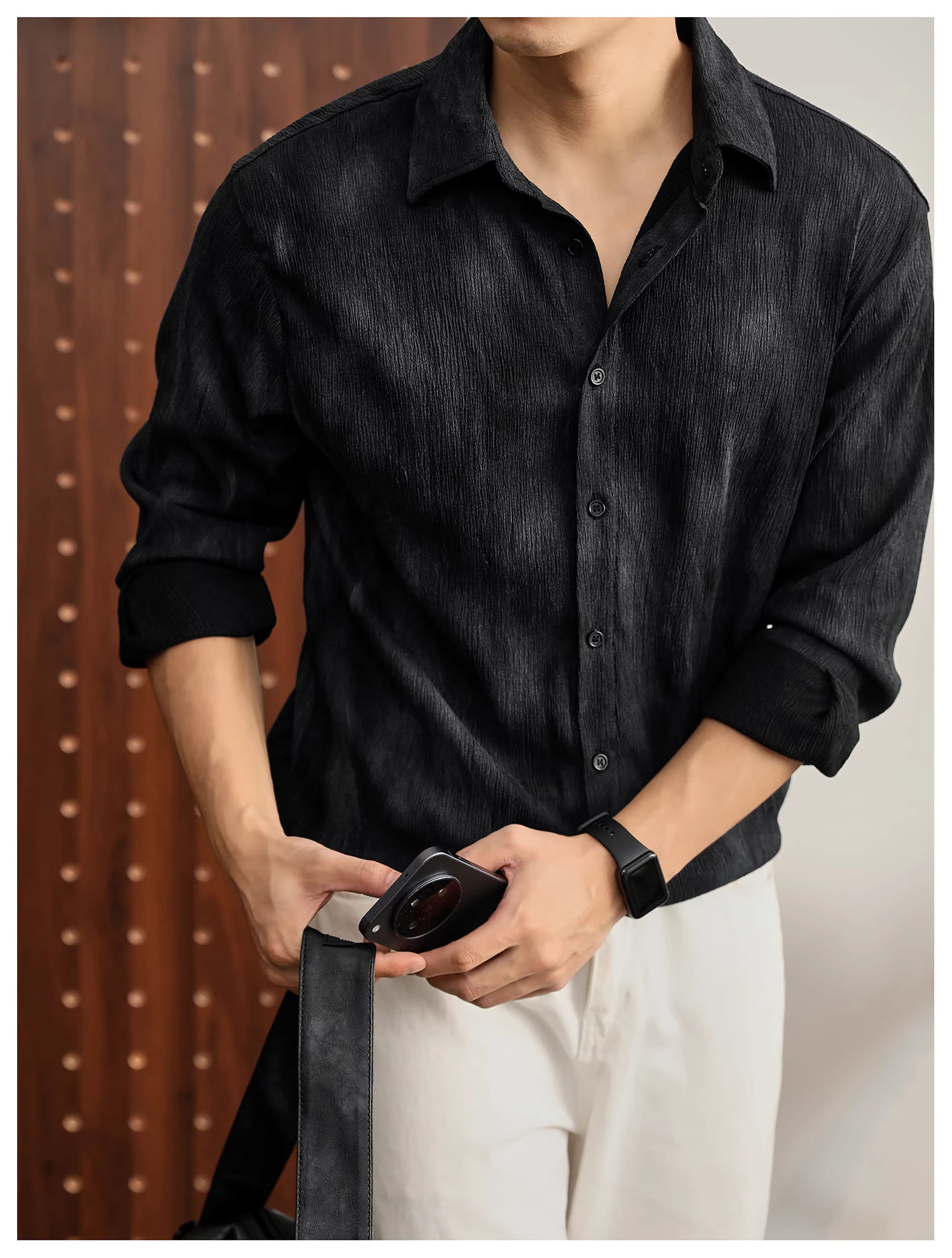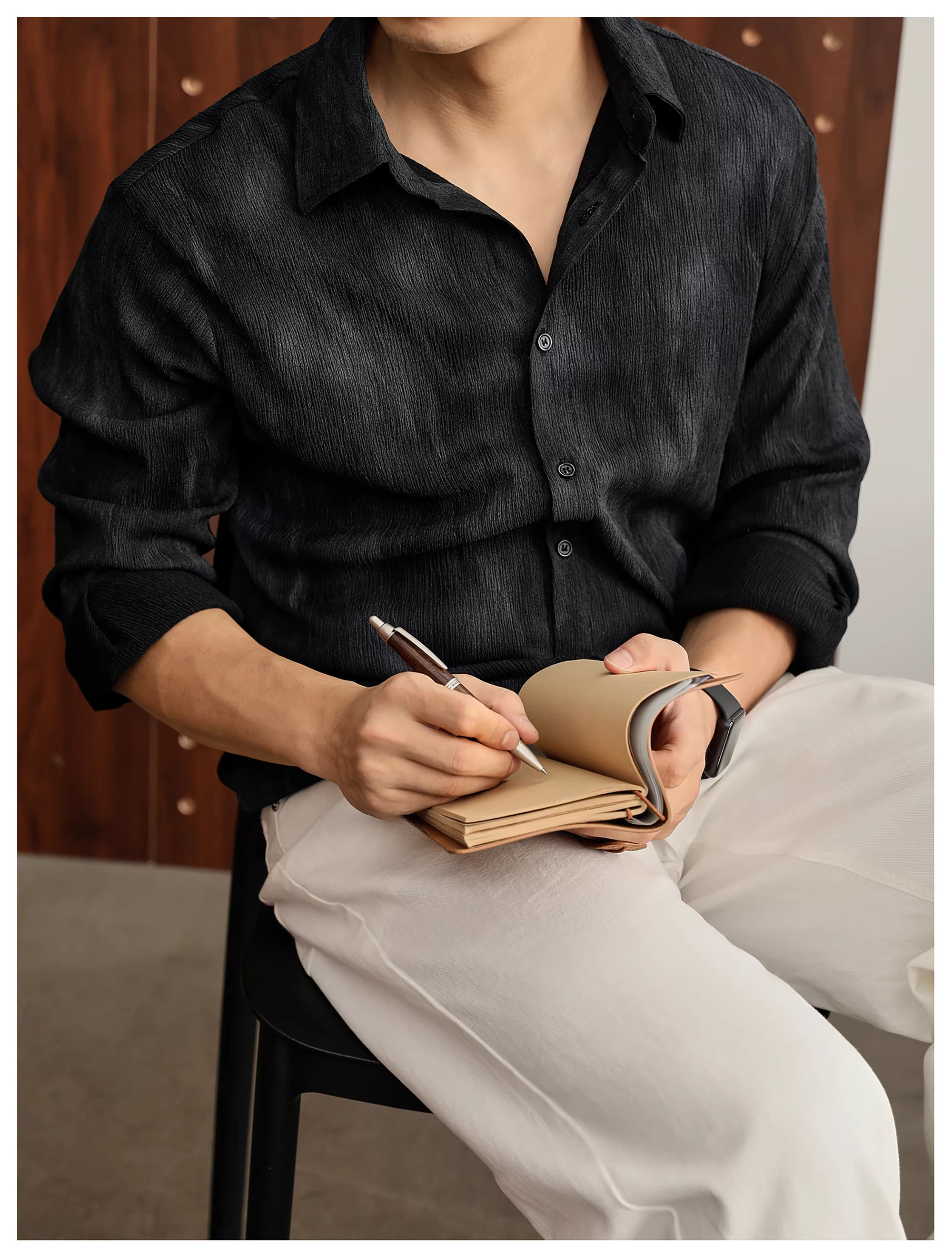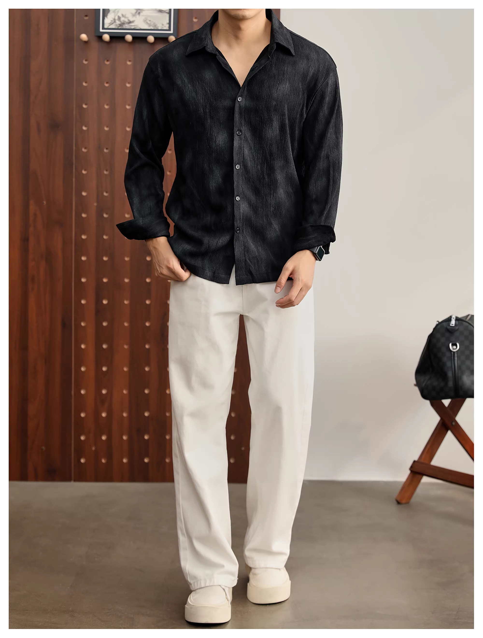 - Ưu đãi đặc biệt: Áo sơ mi nam họa tiết mực chuyển màu theo phong cách retro, chất liệu vân gỗ, dáng suôn, chống nhăn, tay dài