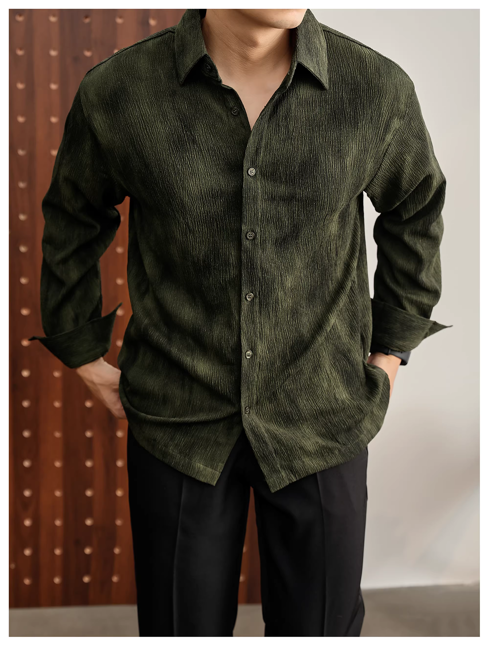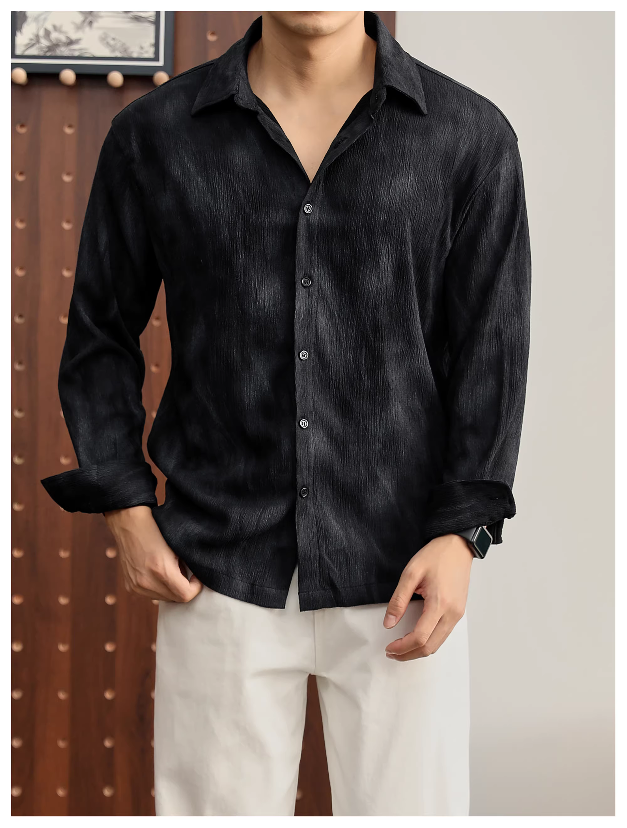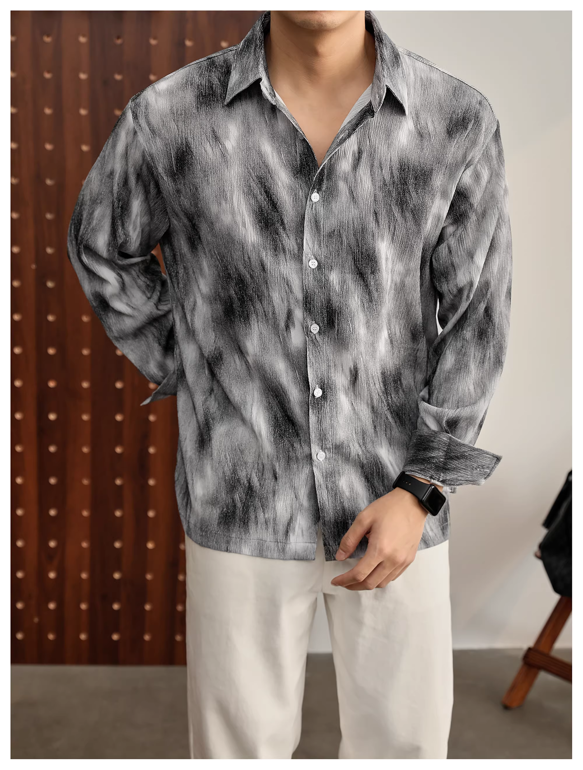 Ưu đãi đặc biệt: Áo sơ mi nam họa tiết mực chuyển màu theo phong cách retro, chất liệu vân gỗ, dáng suôn, chống nhăn, tay dài