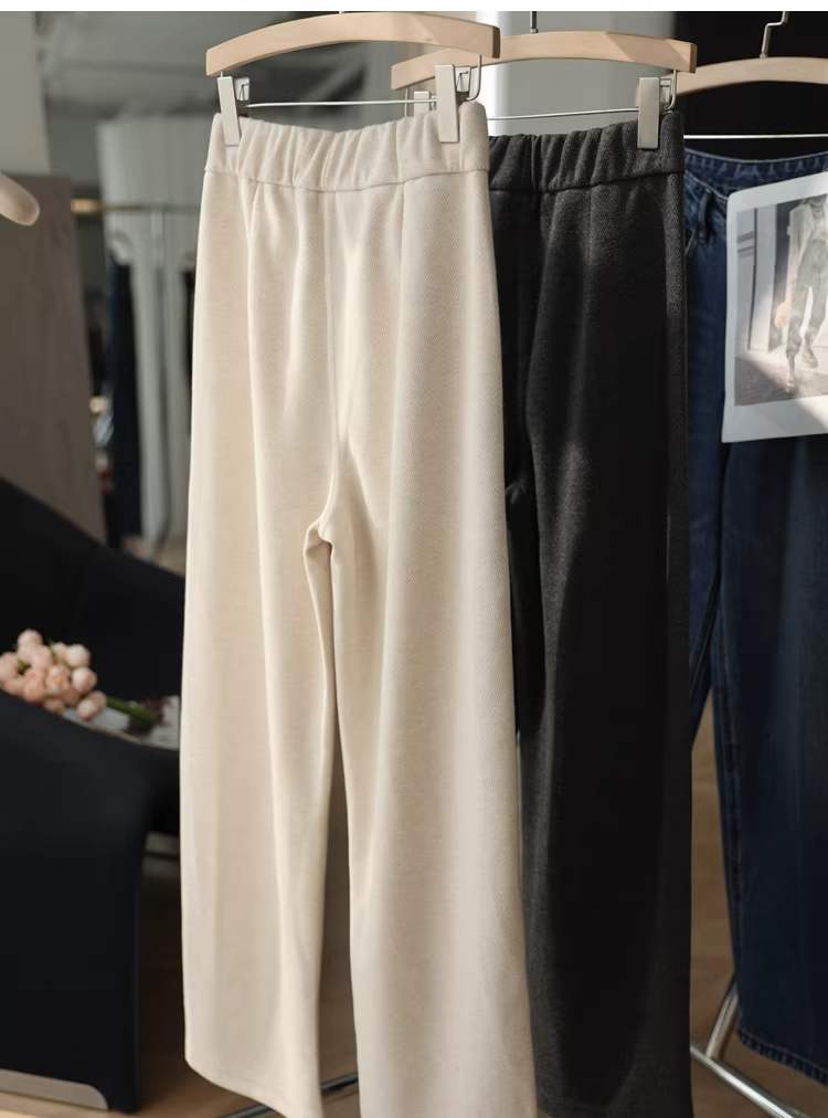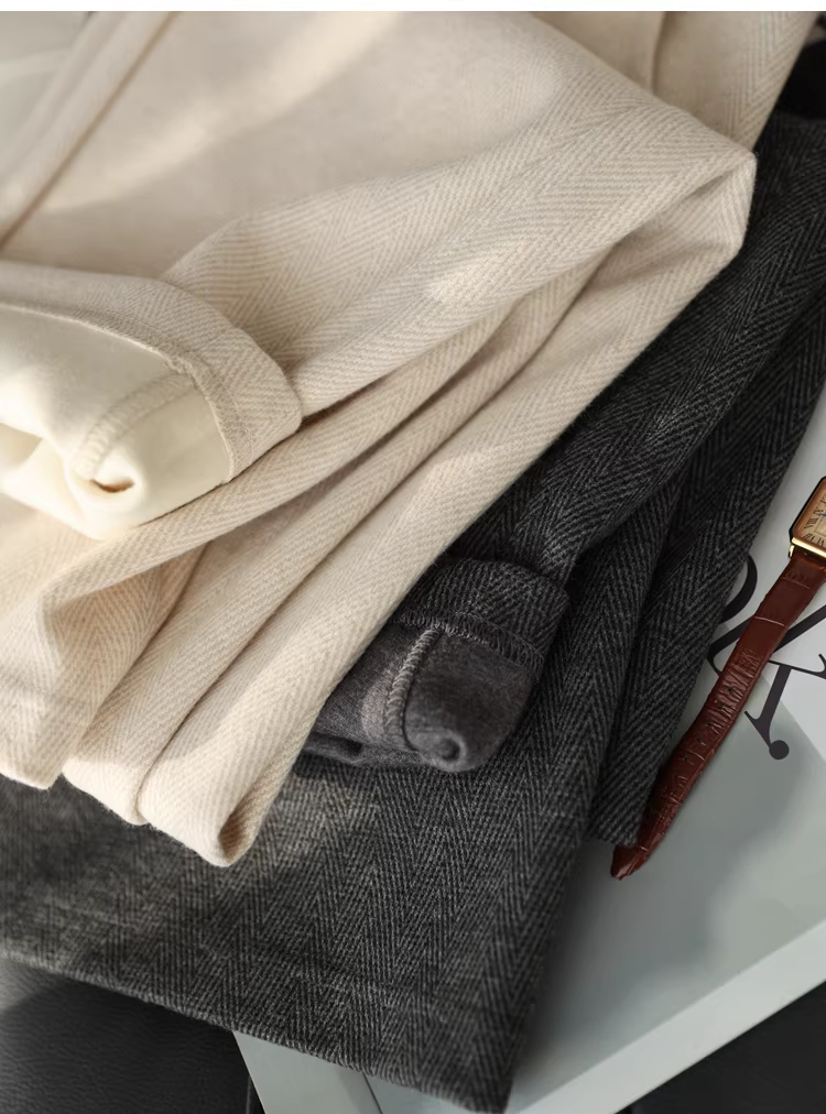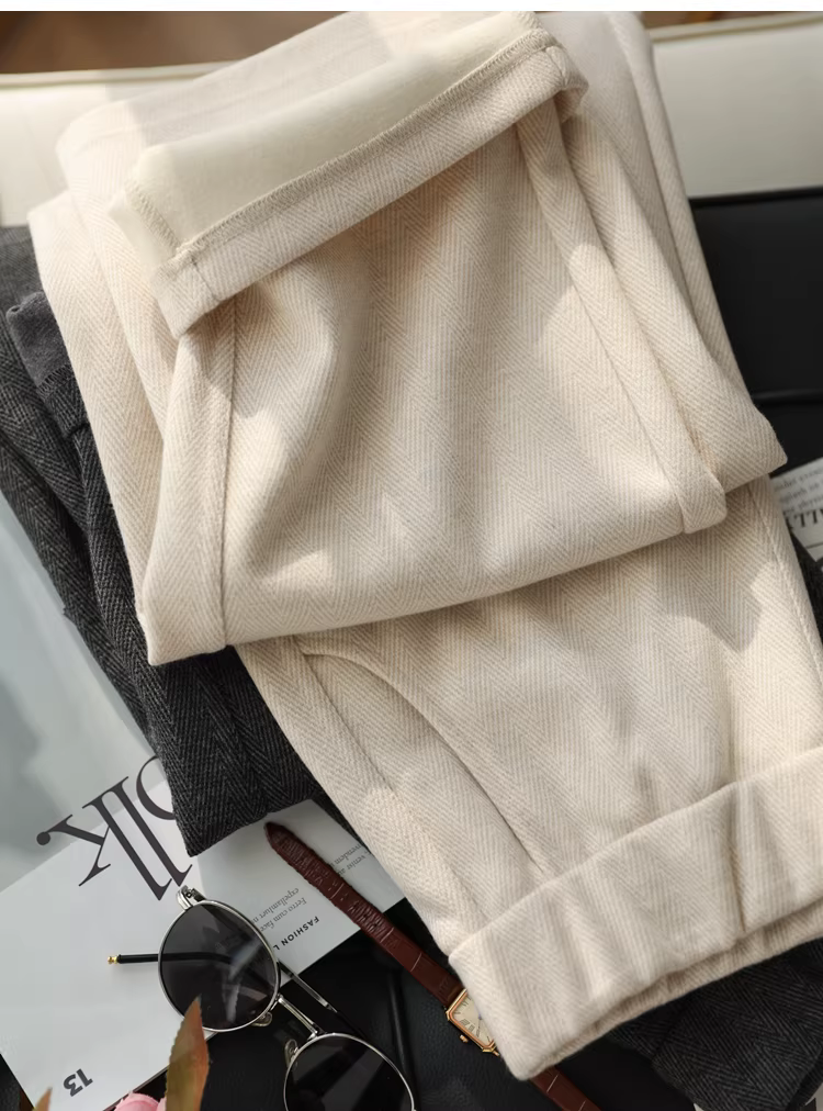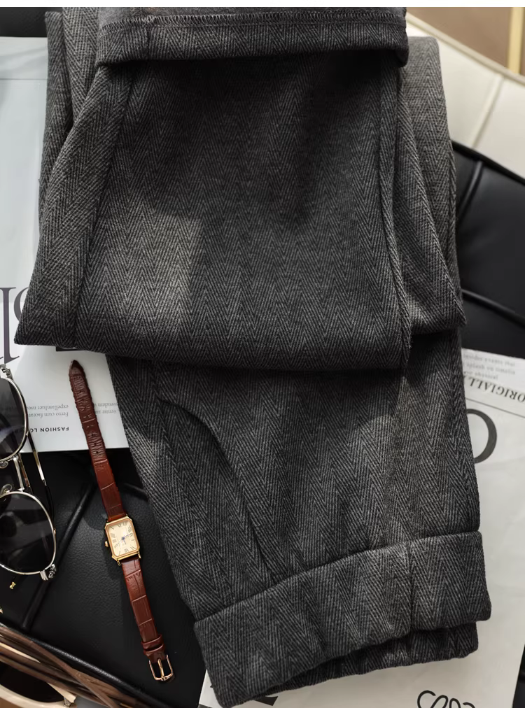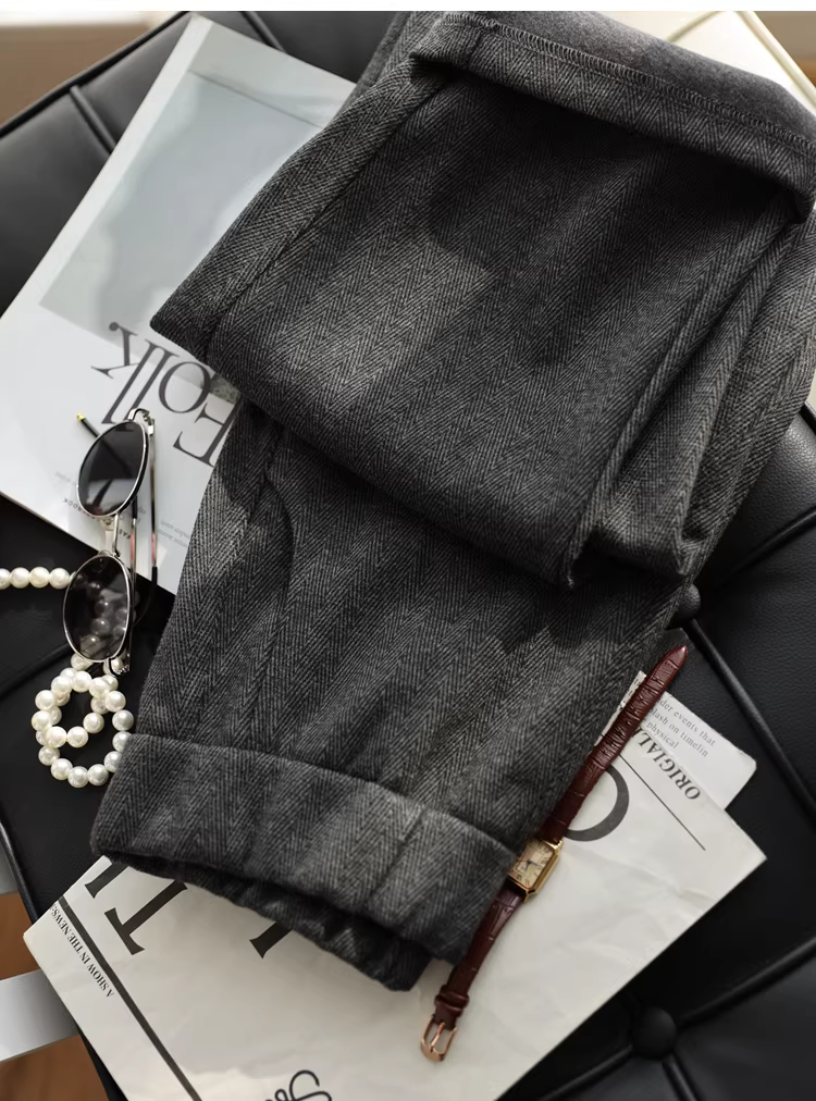 Ưu đãi đặc biệt! Quần len dạ nữ kiểu xương cá dành cho mùa thu đông, quần ống đứng dáng ôm lưng cao dày dặn, phong cách thường ngày