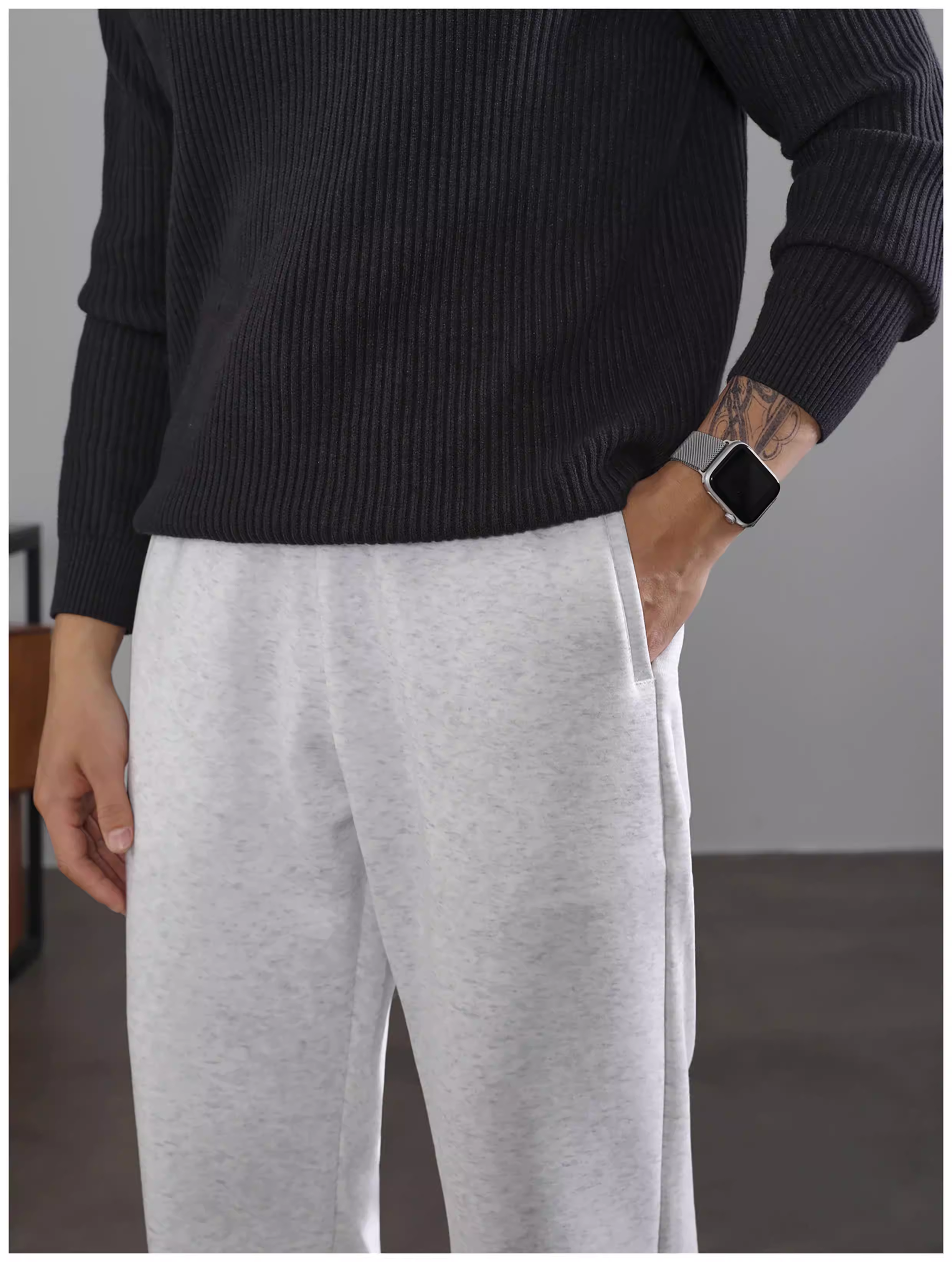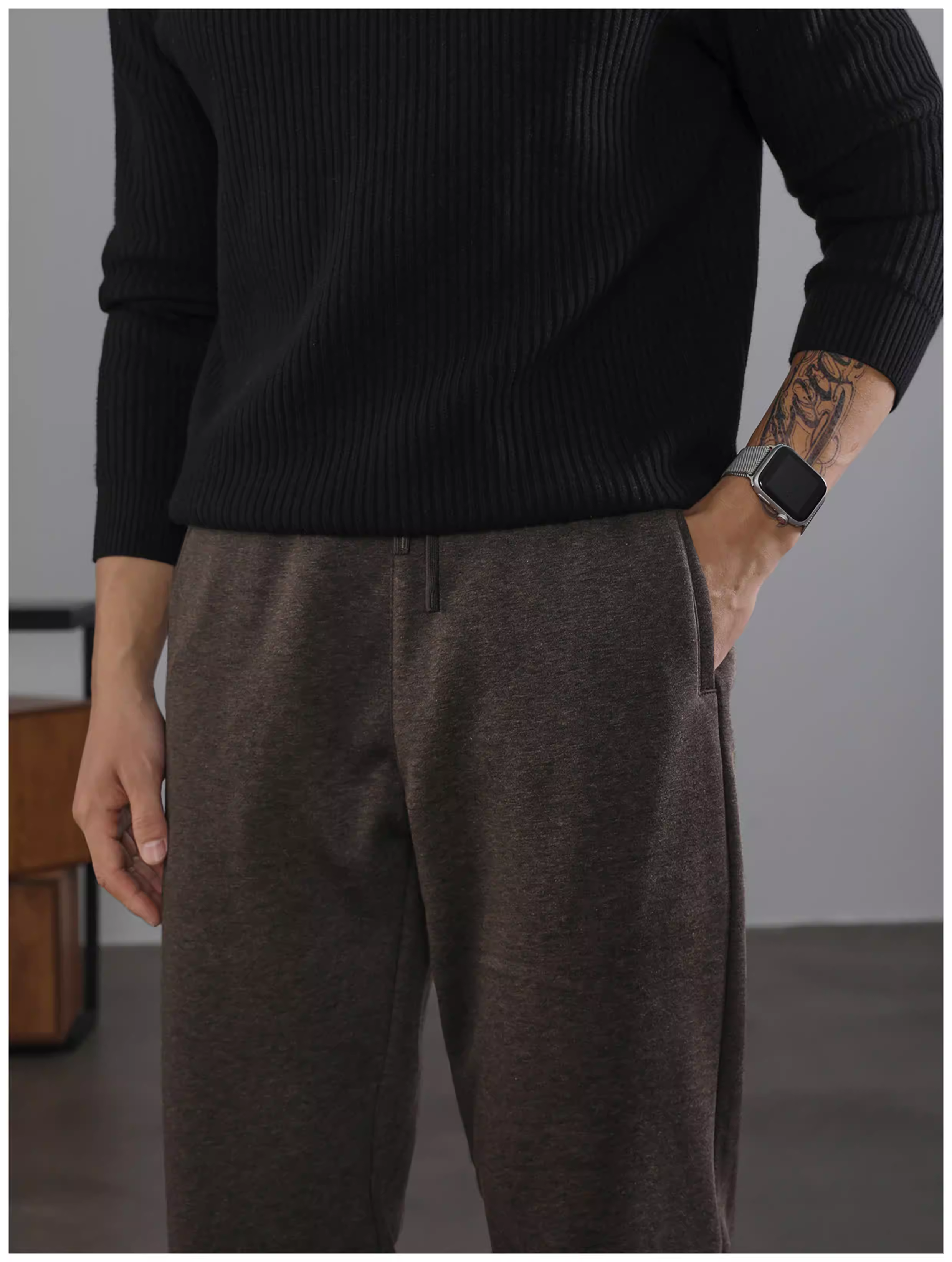 - Ưu đãi đặc biệt: quần ống rộng ấm áp, kiểu dáng thời trang dành cho nam với cạp quần bán co giãn, dây rút, hiệu ứng xếp ly, lót lông cừu, quần đen thường ngày