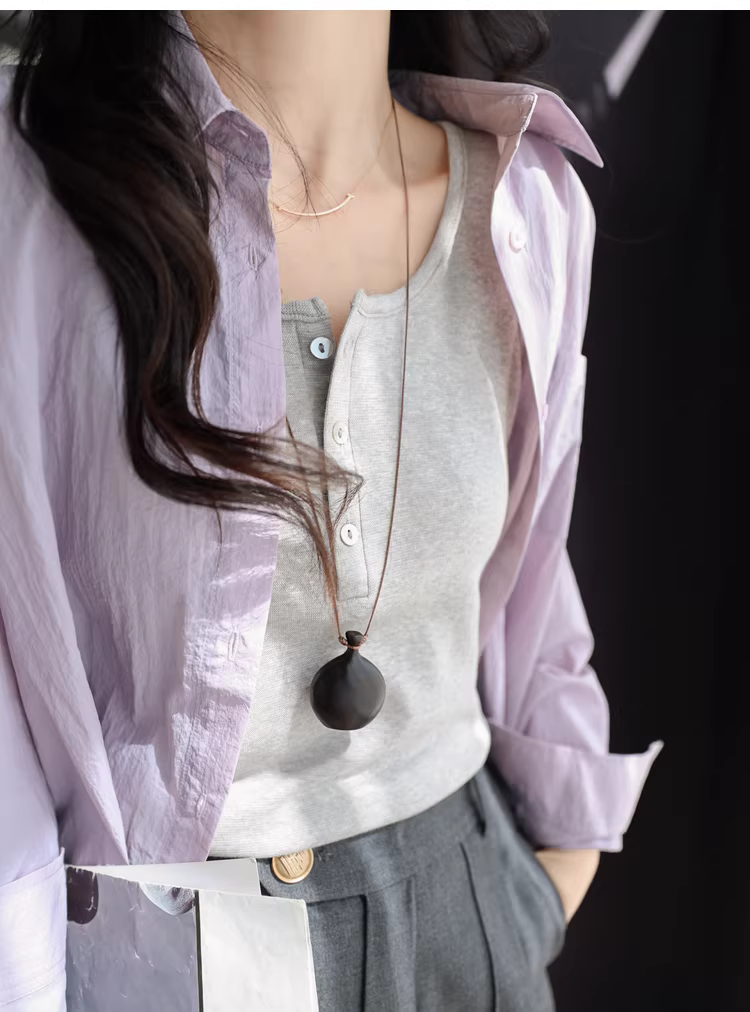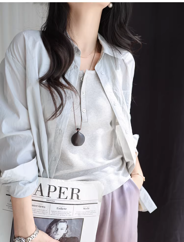 - Vải lanh Pháp + Lenzing Tencel! Áo không tay cổ tròn có nút cài, lớp nền đa năng dành cho nữ trong mùa hè.