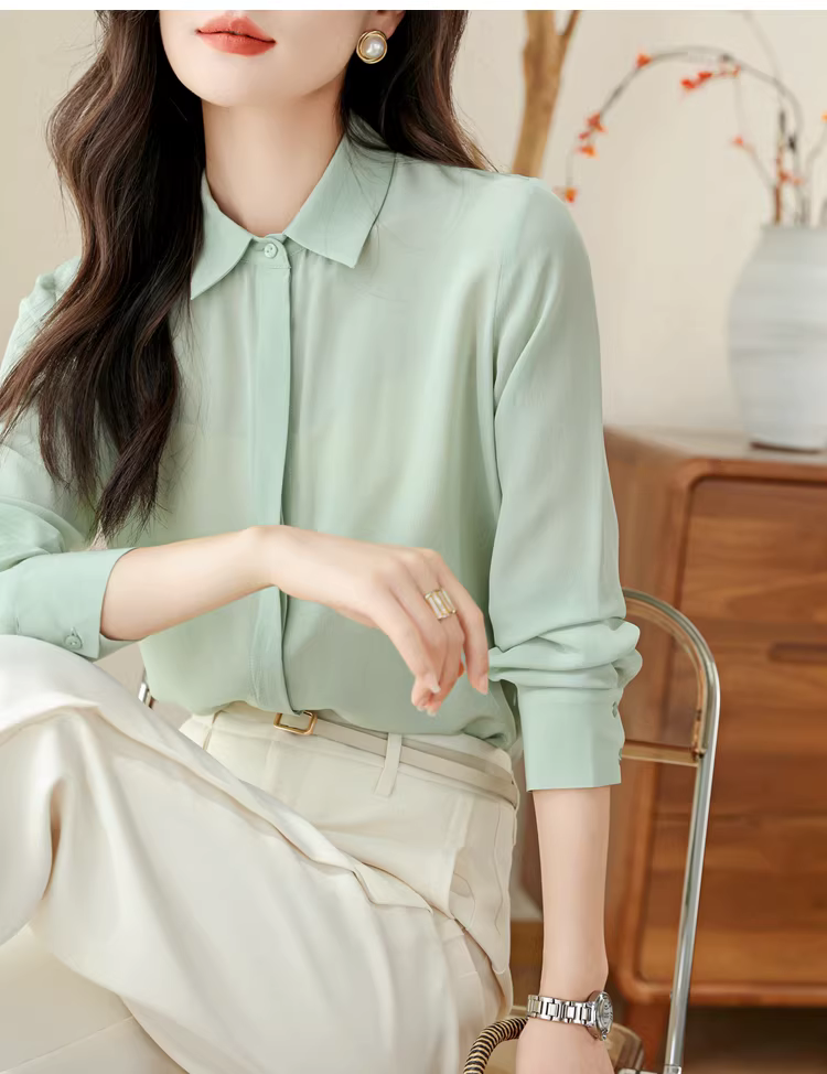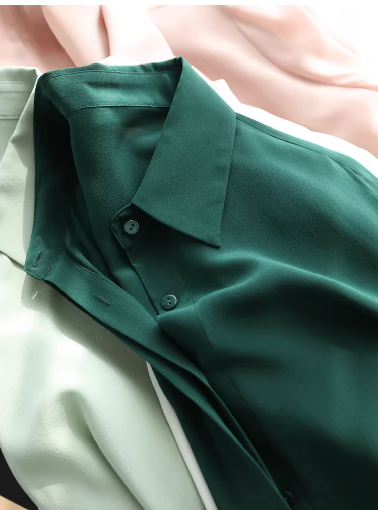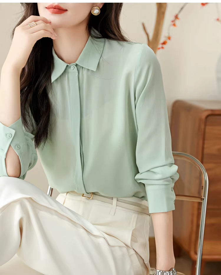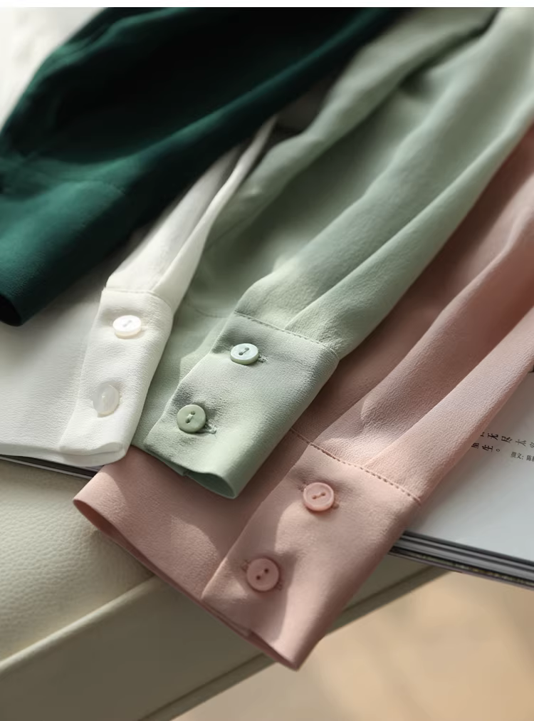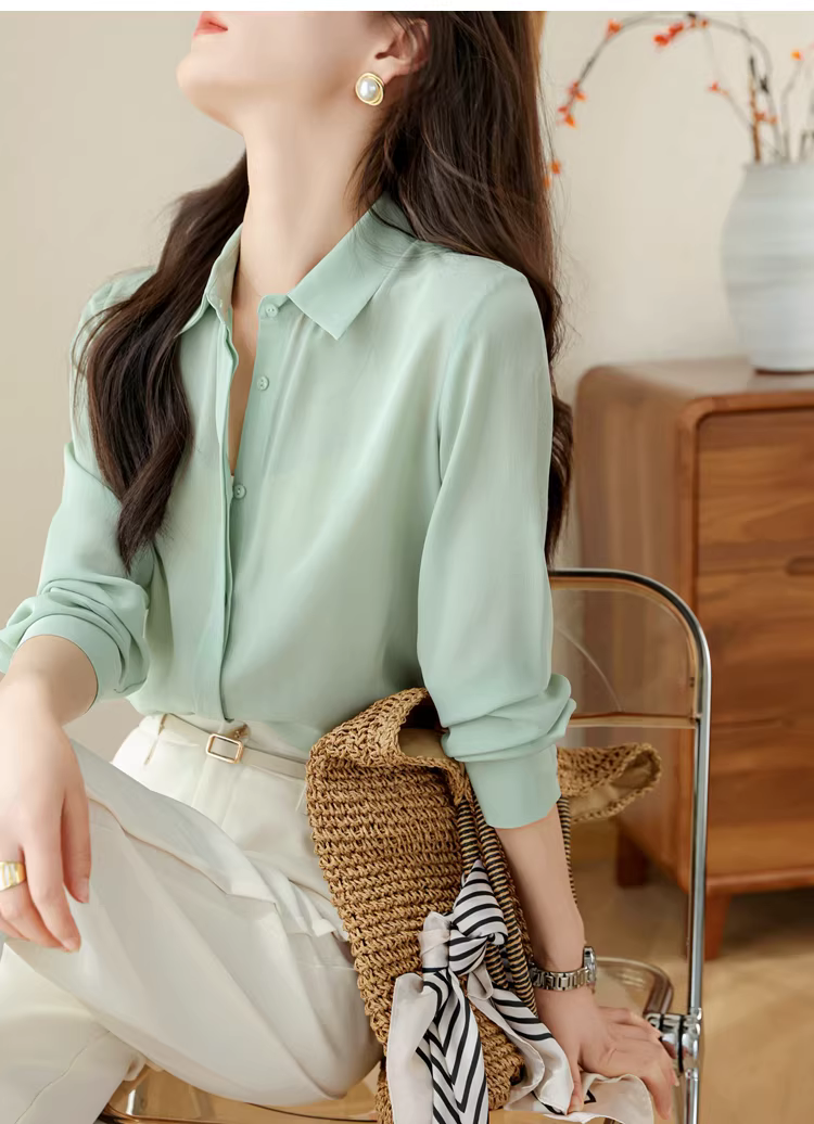 - Vải lụa crepe de chine nặng 16mm! Áo sơ mi dài tay bằng lụa dâu tằm kiểu công sở tinh tế dành cho nữ, áo sơ mi lụa màu trơn dành cho nữ, mùa hè.