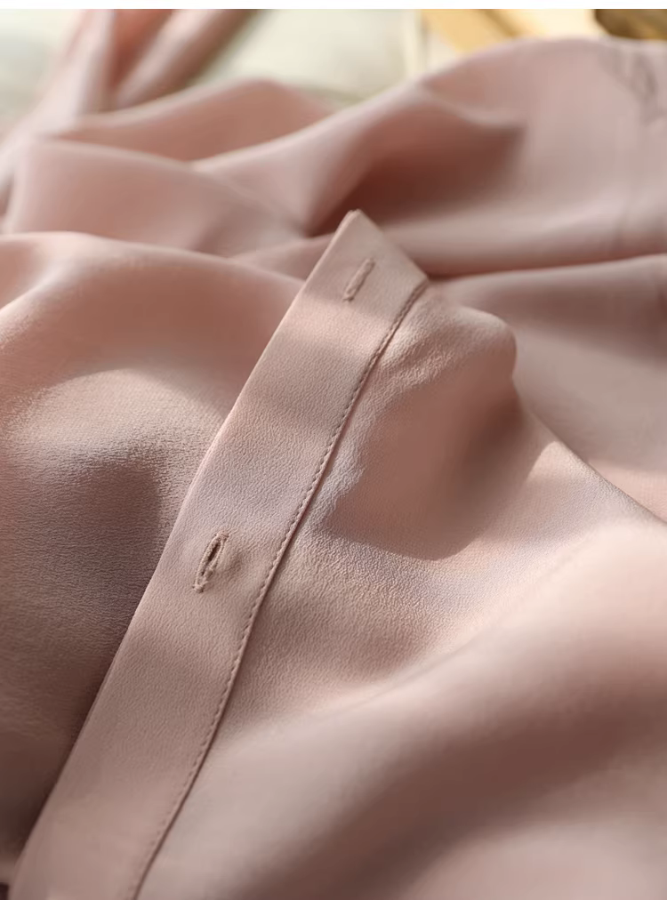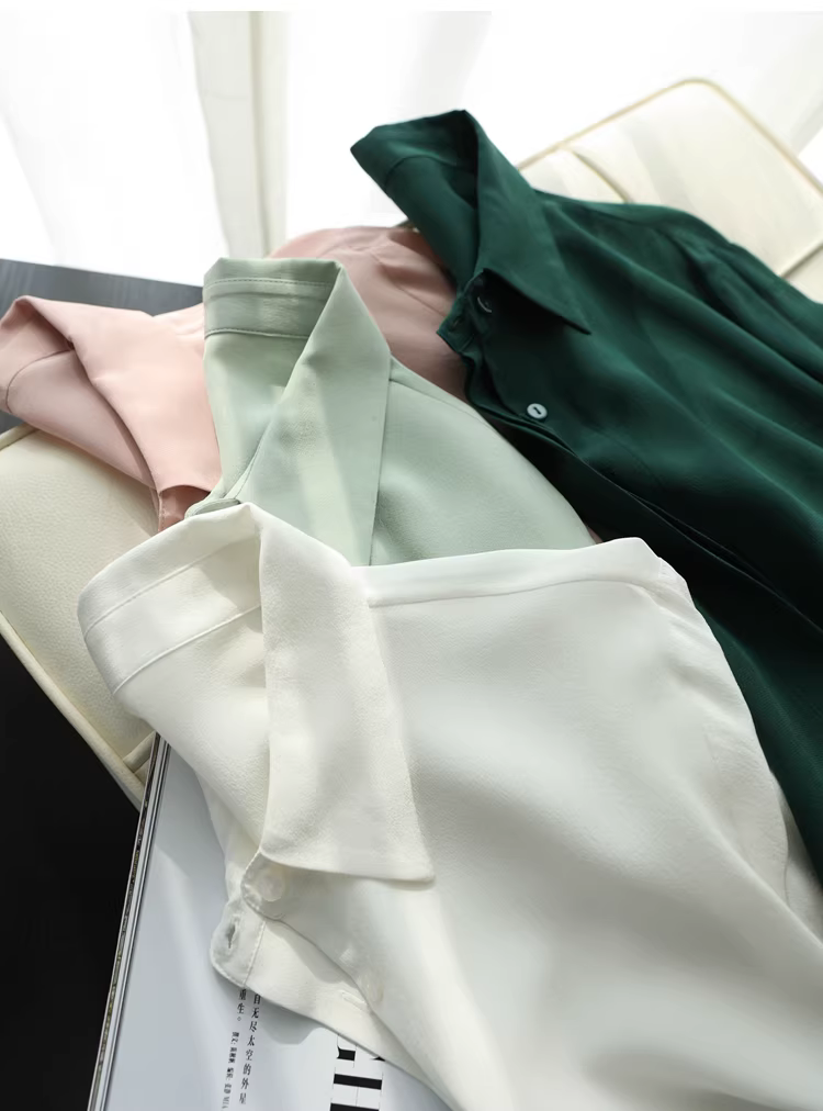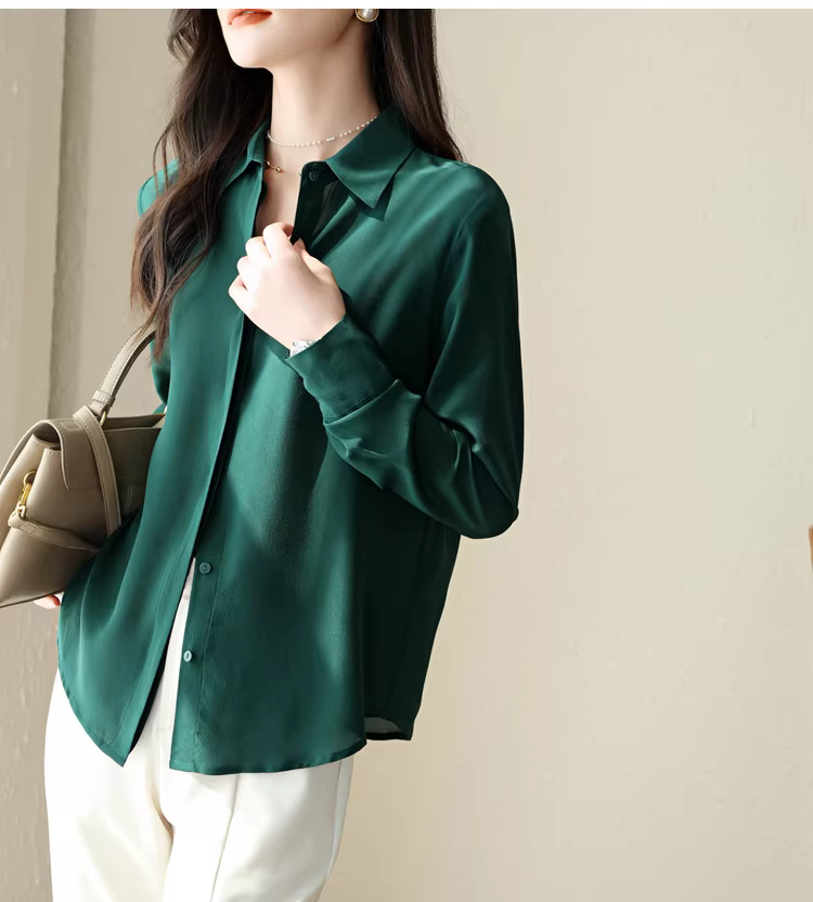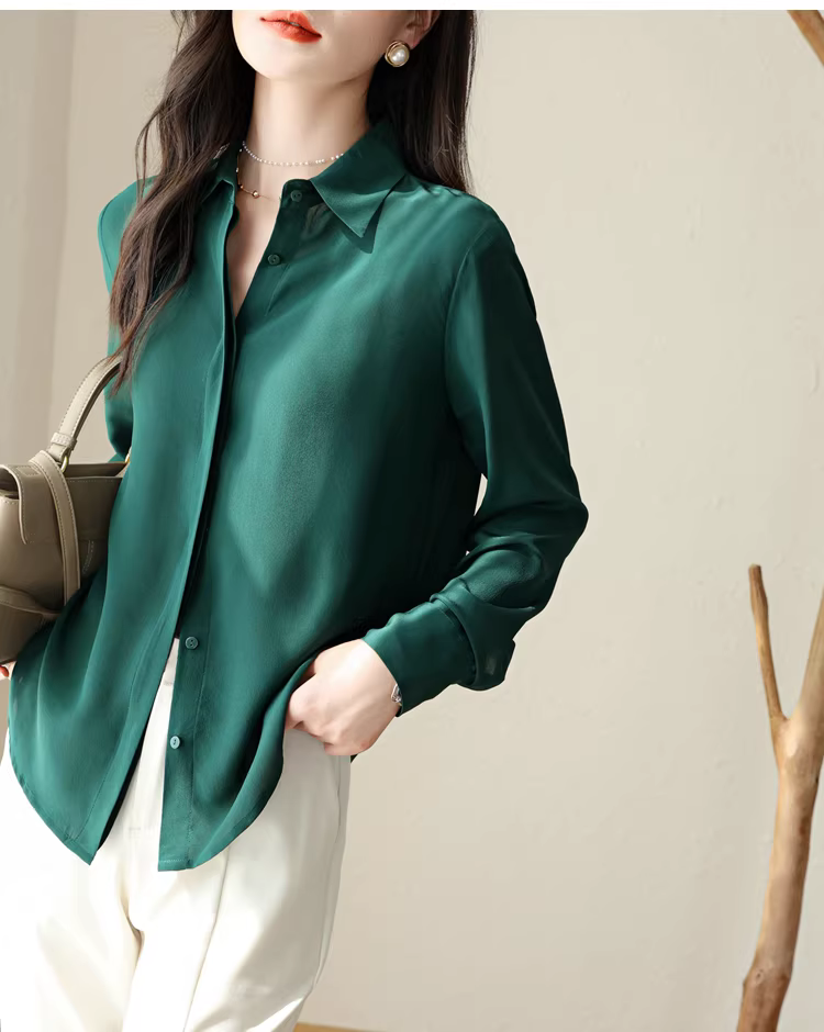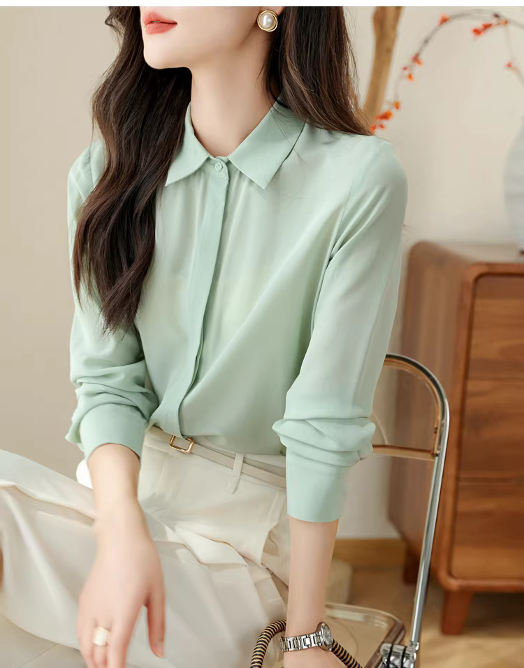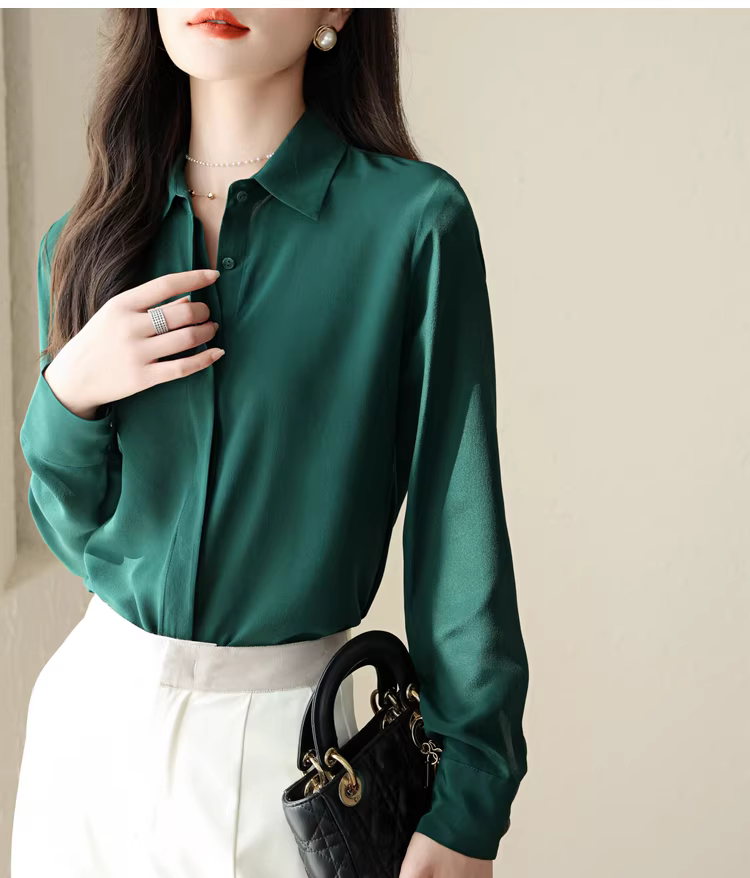 - Vải lụa crepe de chine nặng 16mm! Áo sơ mi dài tay bằng lụa dâu tằm kiểu công sở tinh tế dành cho nữ, áo sơ mi lụa màu trơn dành cho nữ, mùa hè.