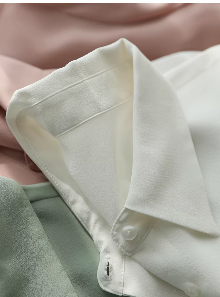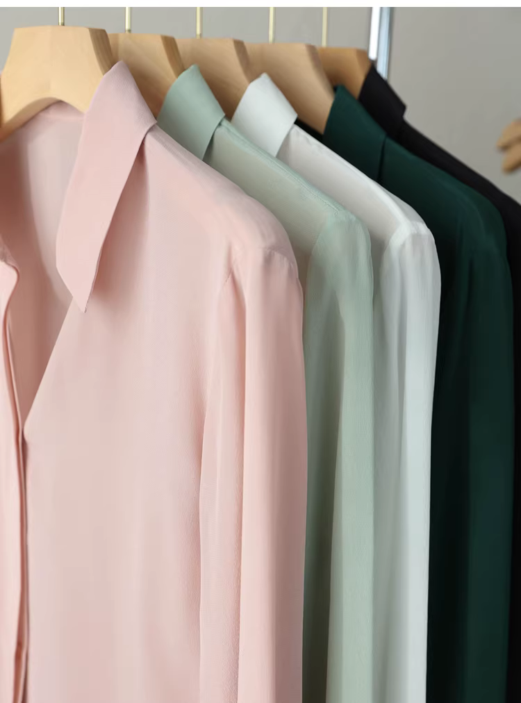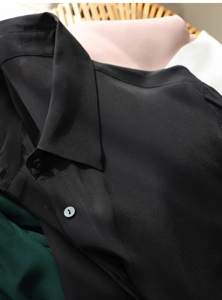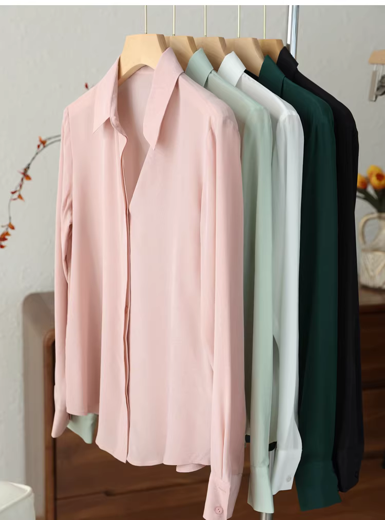 Vải lụa crepe de chine nặng 16mm! Áo sơ mi dài tay bằng lụa dâu tằm kiểu công sở tinh tế dành cho nữ, áo sơ mi lụa màu trơn dành cho nữ, mùa hè.