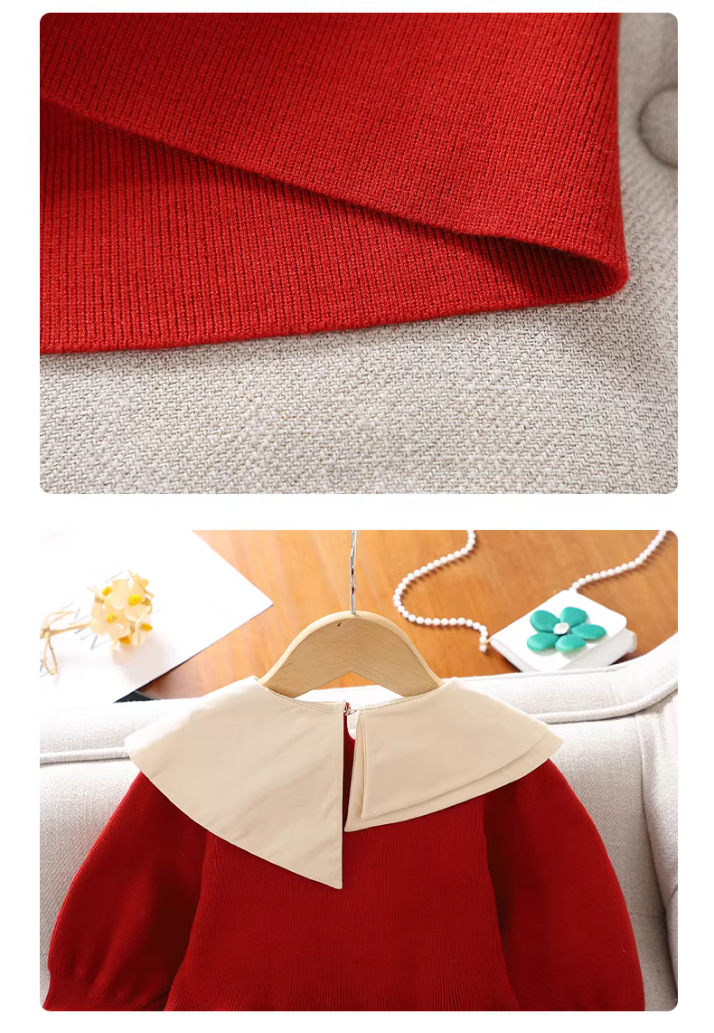 - Váy áo len bé gái mùa đông 2025, mẫu mới, váy công chúa thu đông cho bé, váy đỏ cổ lệch cho bé lớn