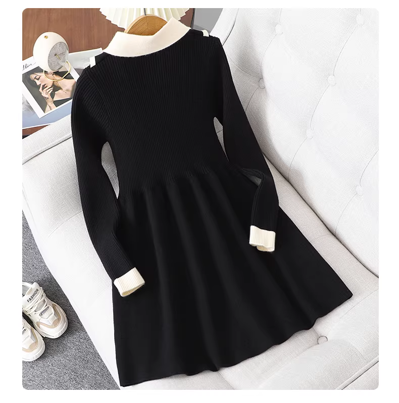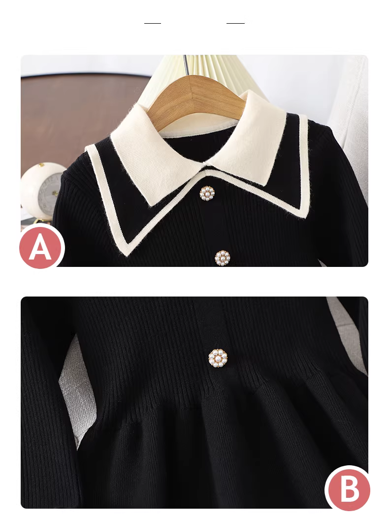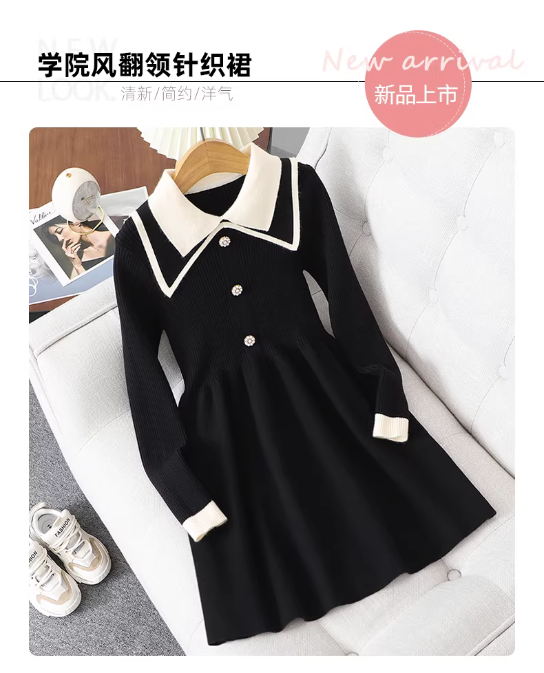 - Váy áo len bé gái thu đông 2025 kiểu mới thời trang trẻ em màu đen phong cách tiểu thư thơ mộng đầm len ngọt ngào công chúa