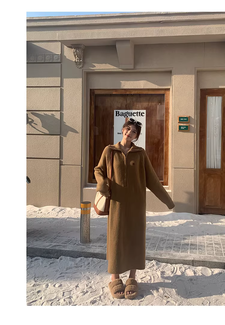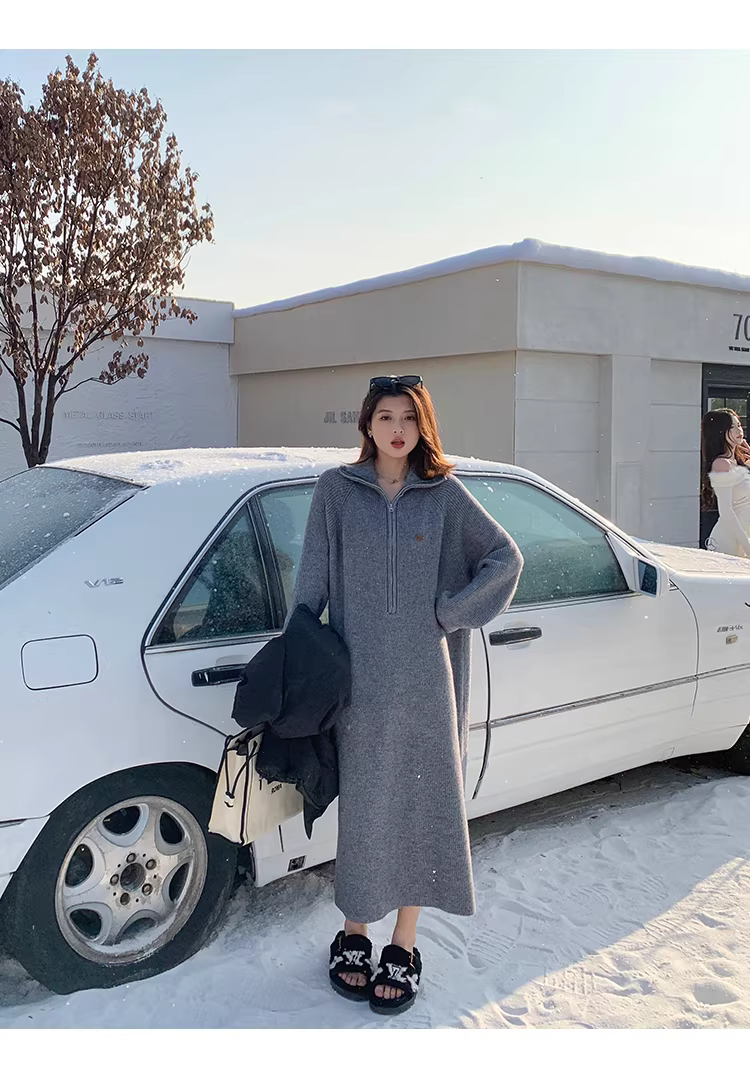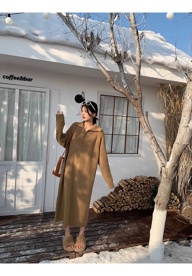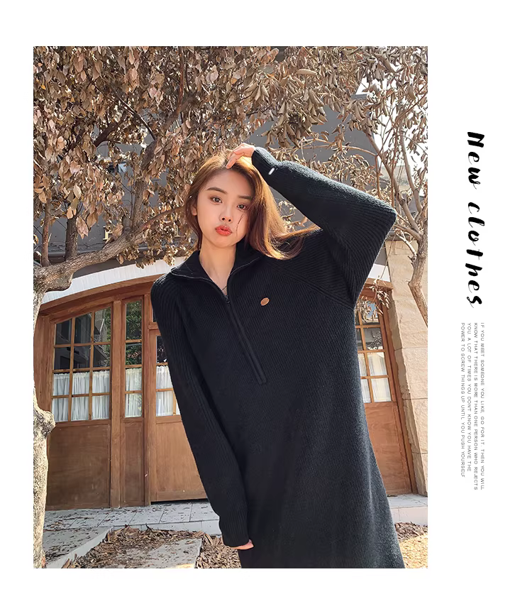 - Váy áo len dáng dài vừa phải, dáng suông, tay dài, size lớn, chất liệu len ấm áp của Zhang Daren, mã MM2024.