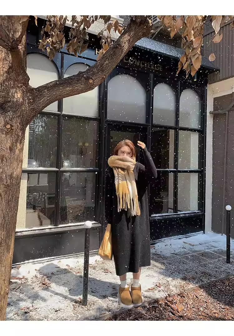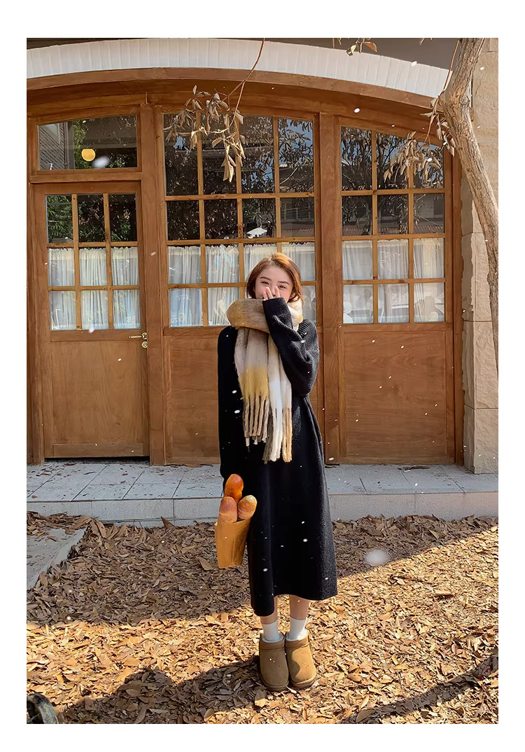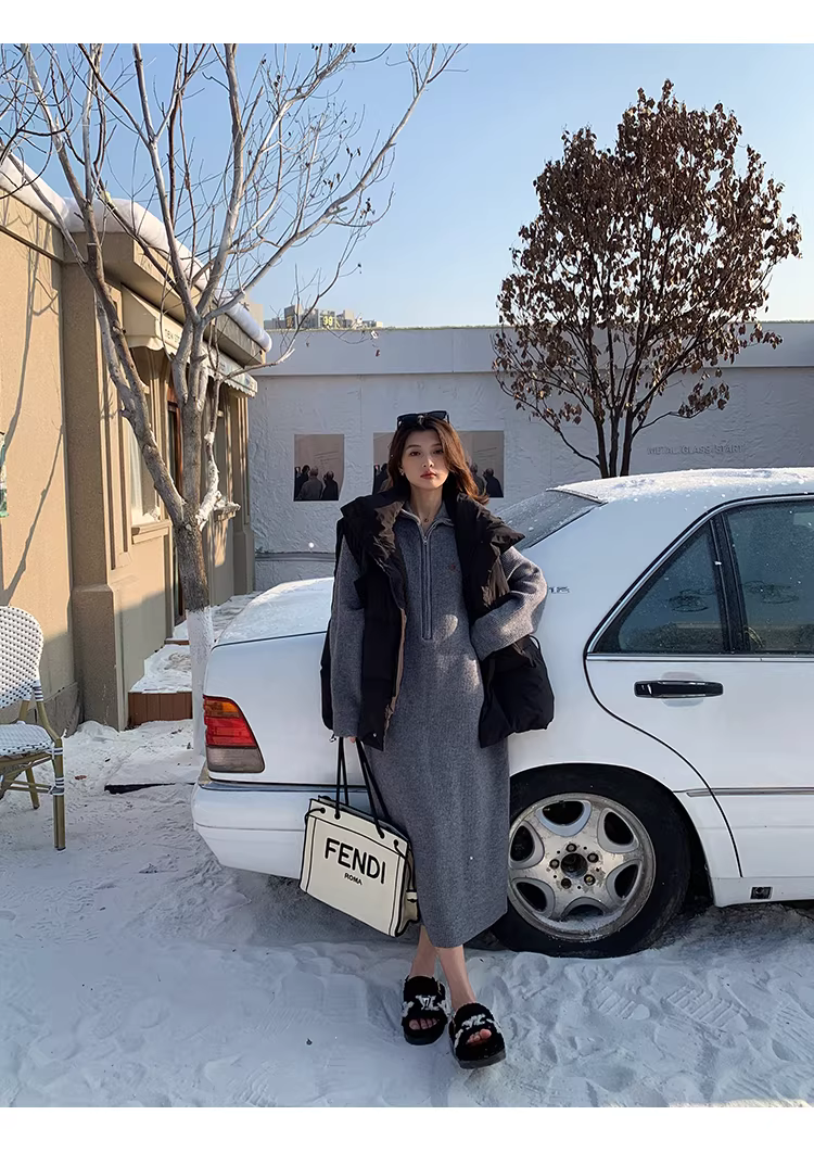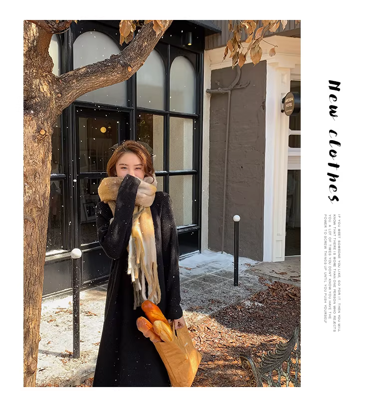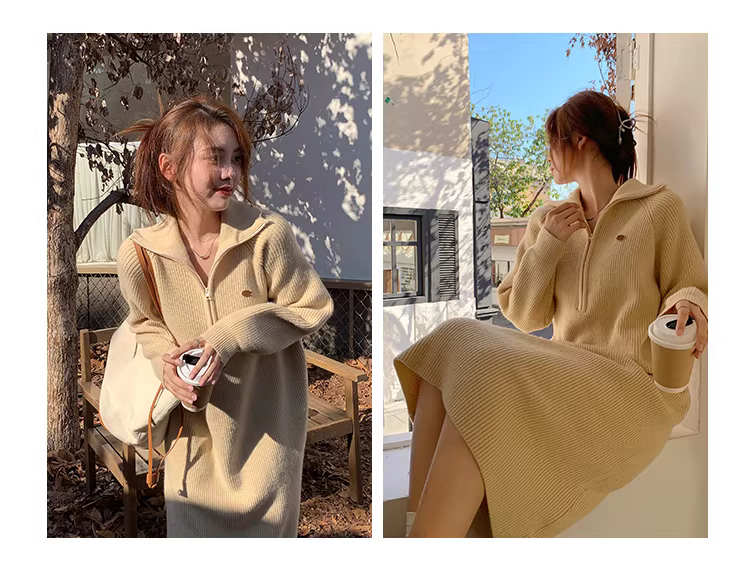 - Váy áo len dáng dài vừa phải, dáng suông, tay dài, size lớn, chất liệu len ấm áp của Zhang Daren, mã MM2024.