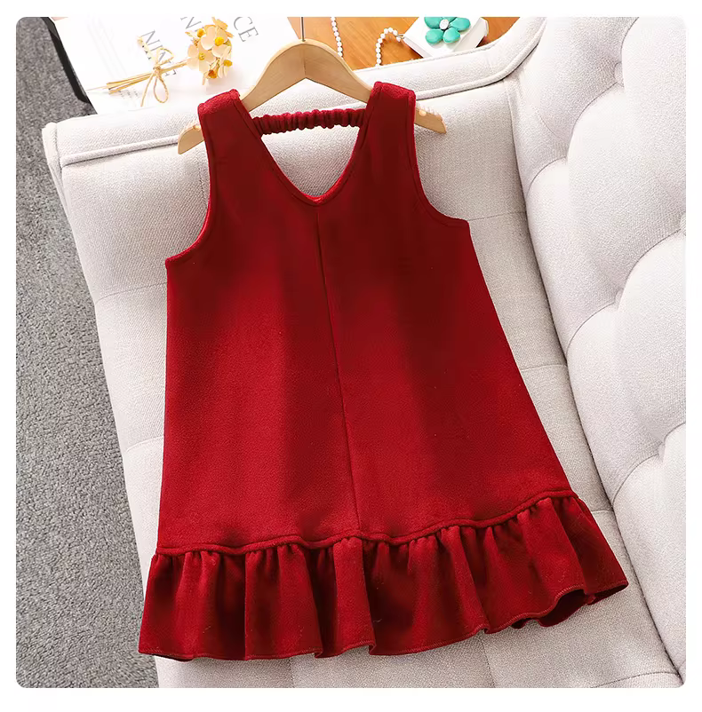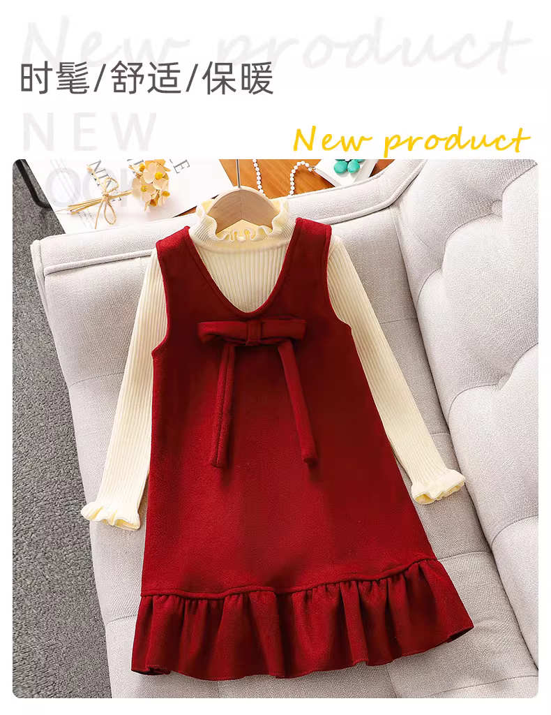 - Váy áo len đỏ Tết thiếu nhi mùa thu đông, váy lót lông cừu Tết thiếu nhi kiểu mới 2025