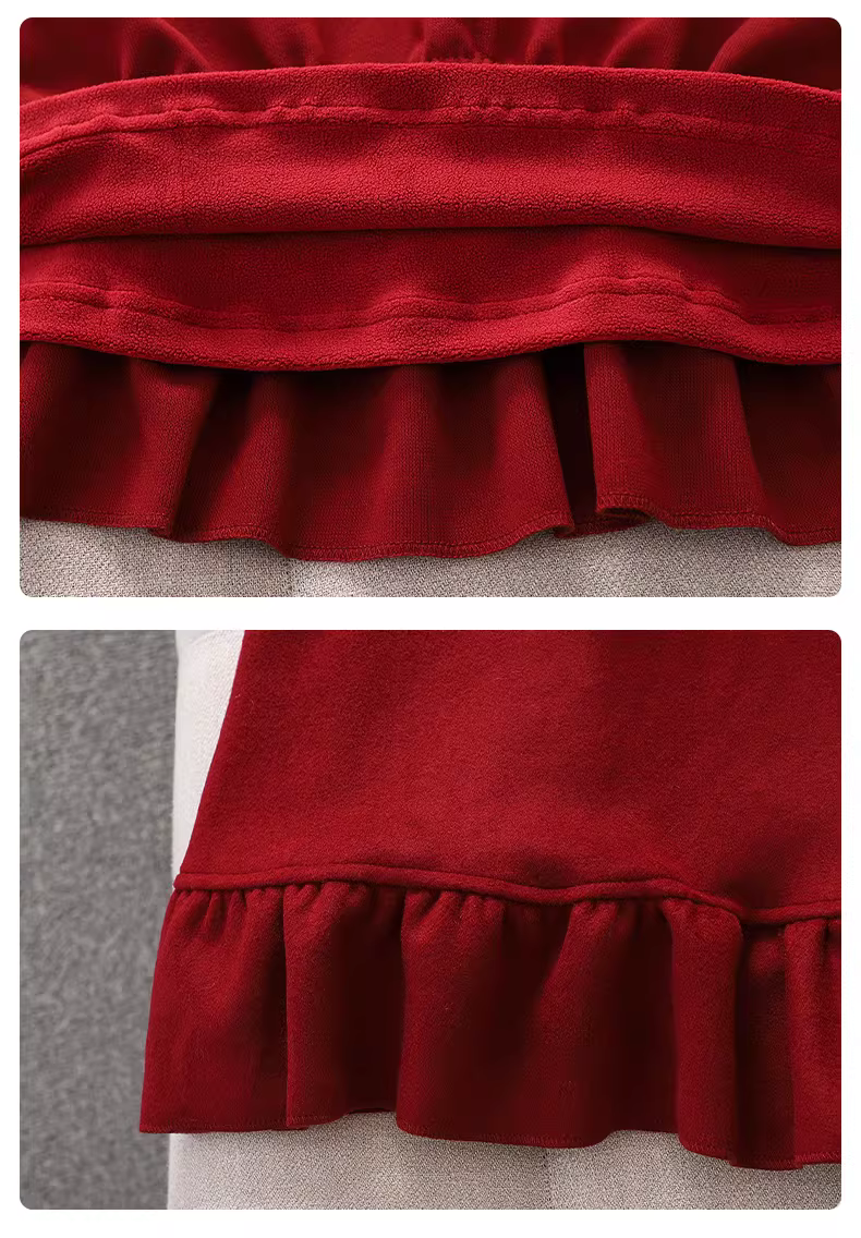 Váy áo len đỏ Tết thiếu nhi mùa thu đông, váy lót lông cừu Tết thiếu nhi kiểu mới 2025