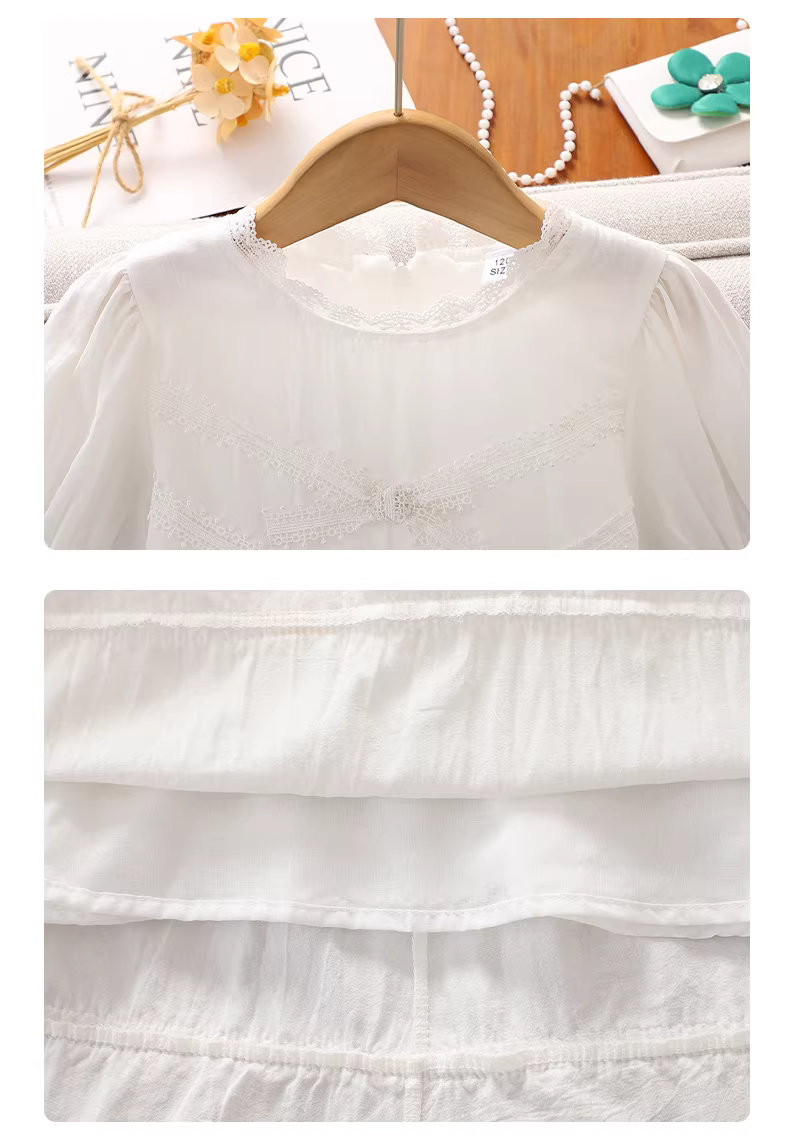 - Váy bé gái 2025, quần áo mùa hè mới, váy công chúa trắng trẻ em, kiểu dáng mỏng mùa hè, váy nơ cho bé gái lớn