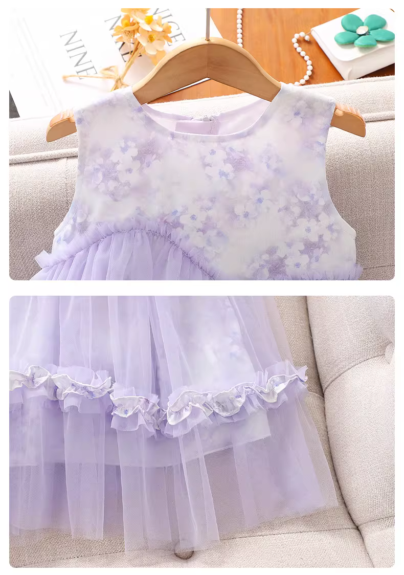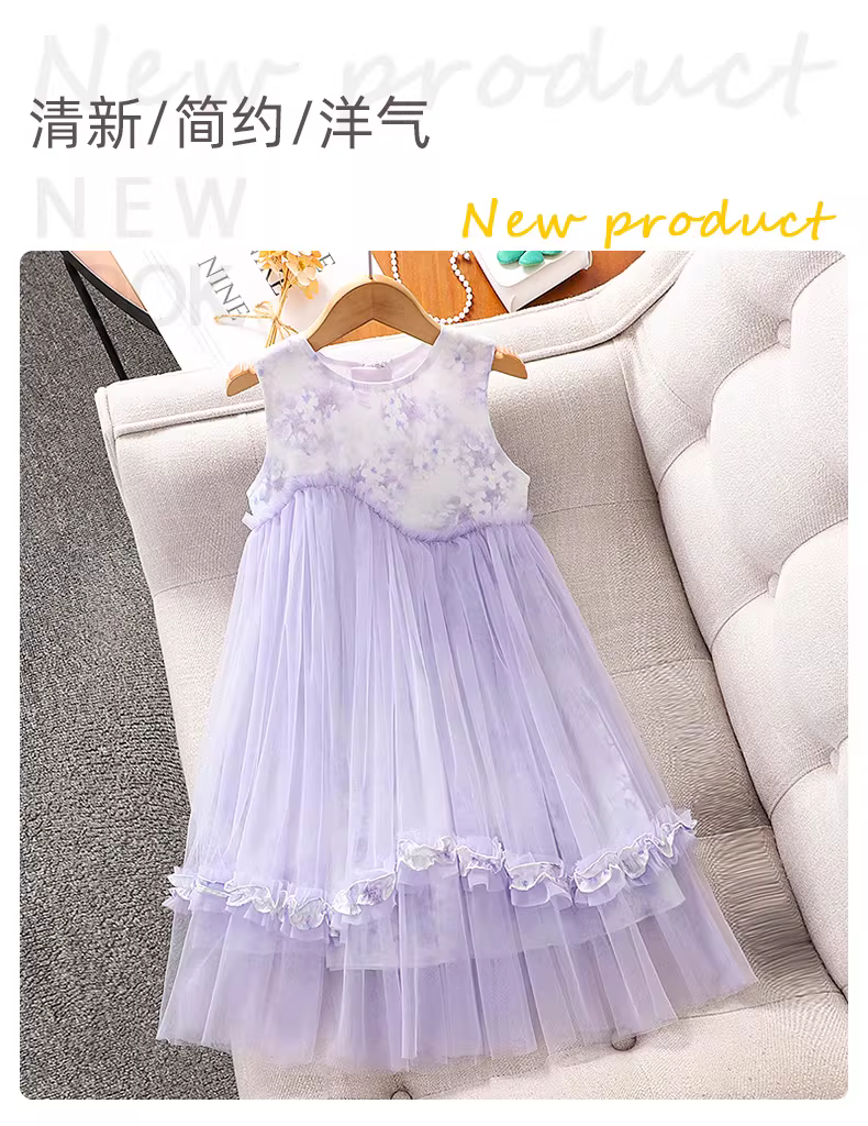 - Váy bé gái 2025, quần áo mùa hè mới, váy lưới không tay cho trẻ em, váy công chúa mỏng cho bé gái lớn