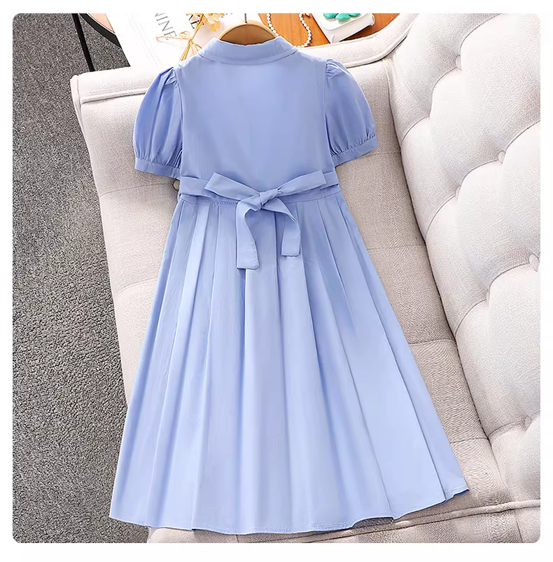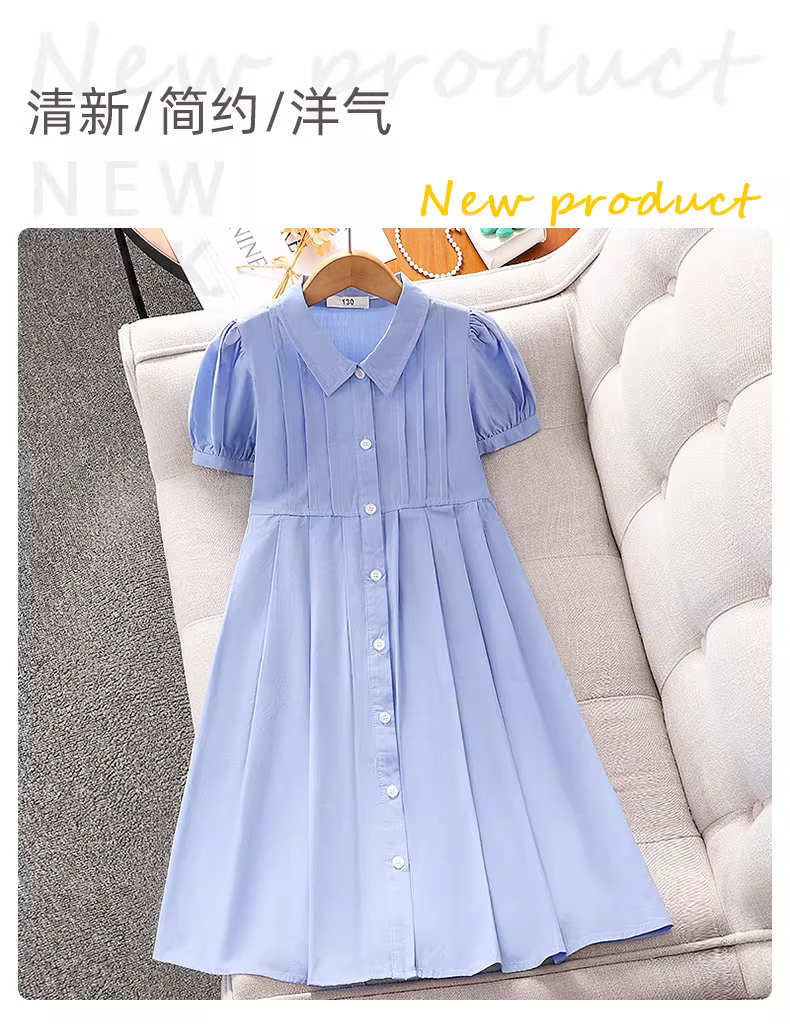 - Váy bé gái hè 2025 kiểu mới, đầm sơ mi ngắn tay phong cách hè, quần áo trẻ em phong cách preppy, chân váy polo