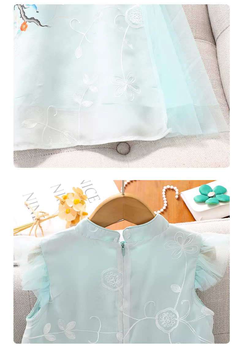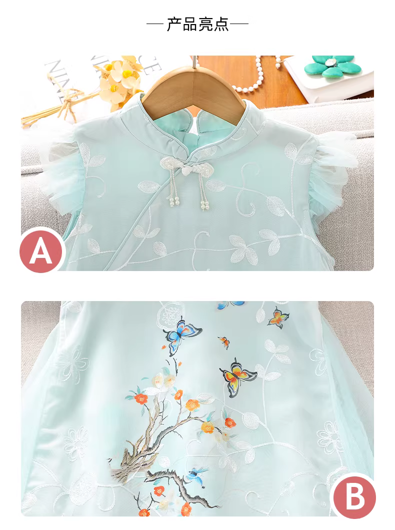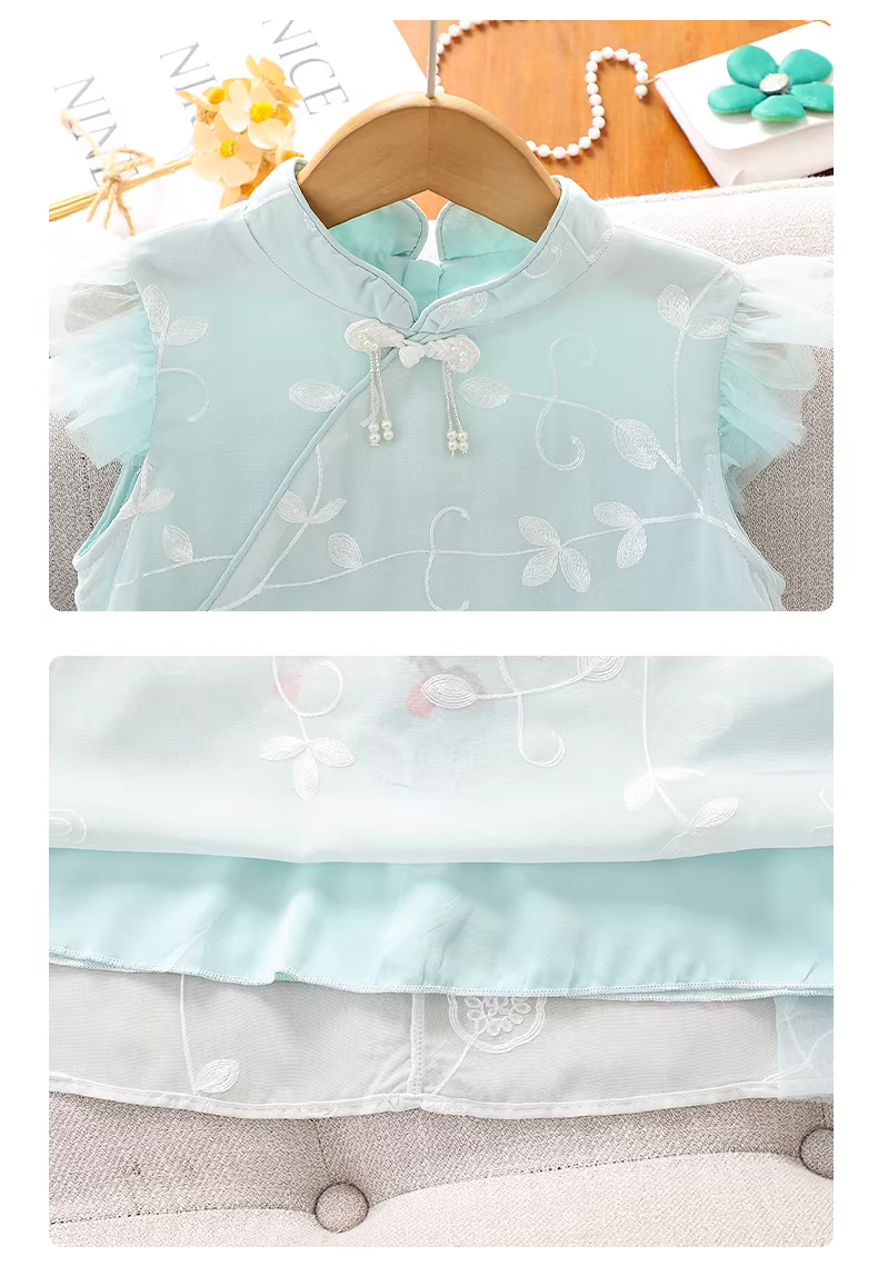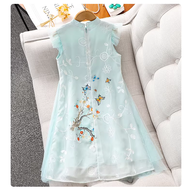 - Váy bé gái hè 2025 kiểu mới, váy kiểu Trung Hoa, váy sườn xám, quần áo trẻ em lớn mùa hè, Hanfu