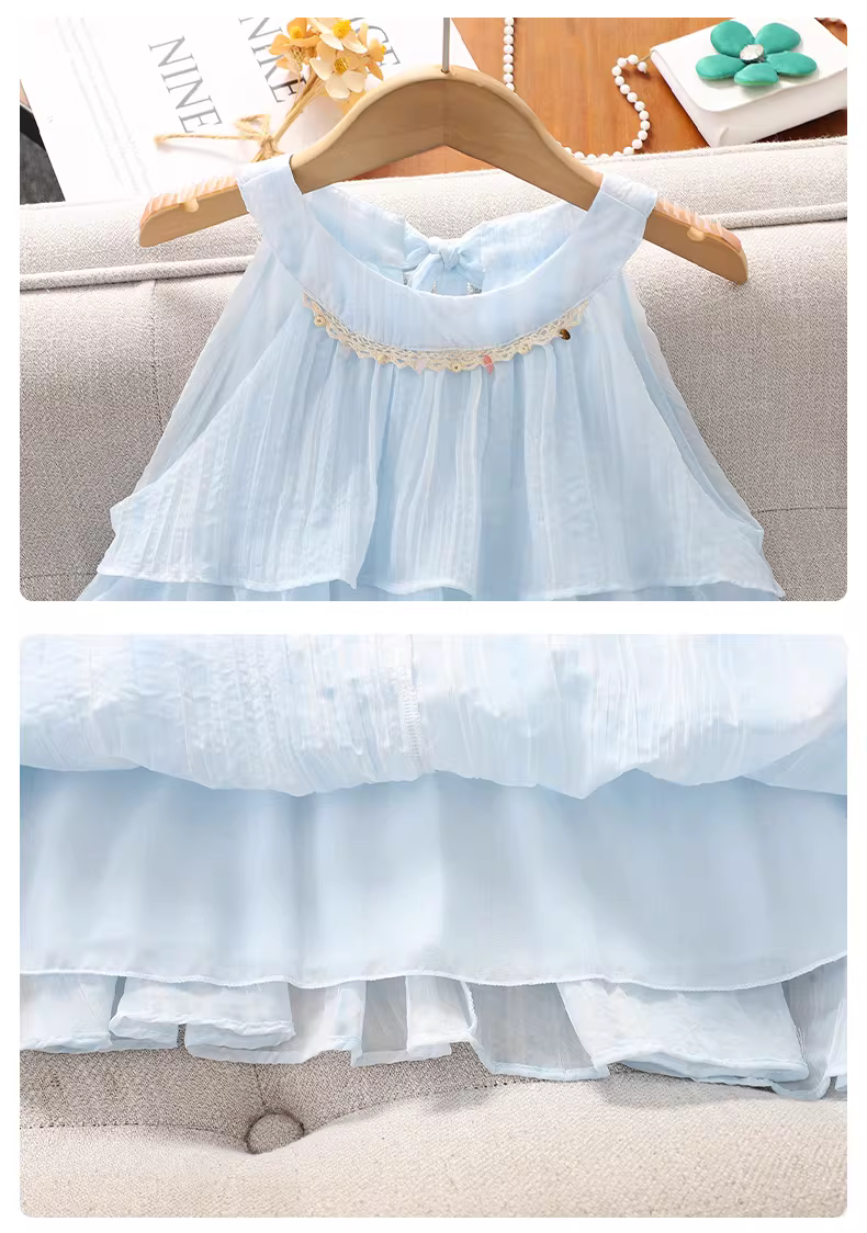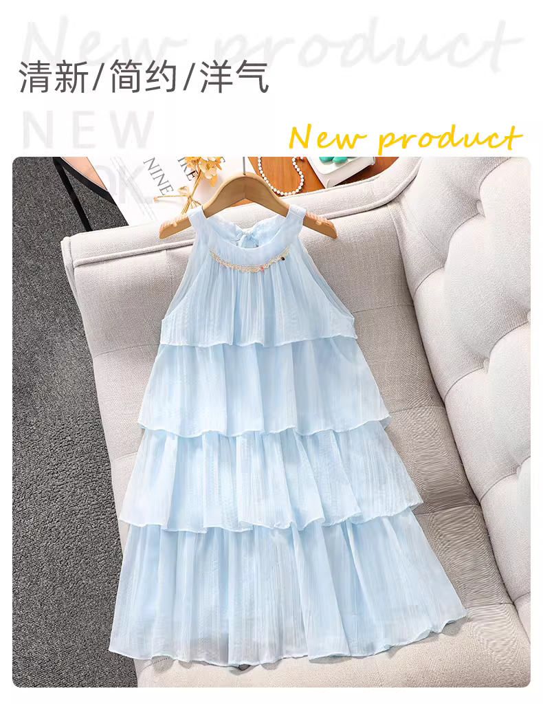 - Váy bé gái hè 2025 kiểu mới, váy voan xếp tầng không tay, váy công chúa mỏng cho bé đi chơi ngày lễ