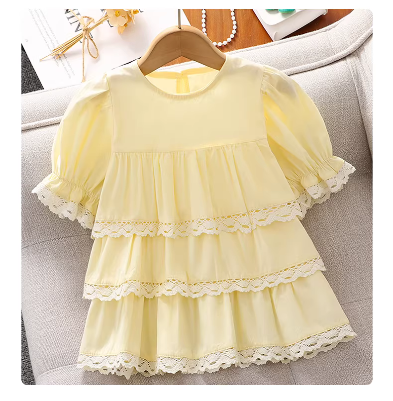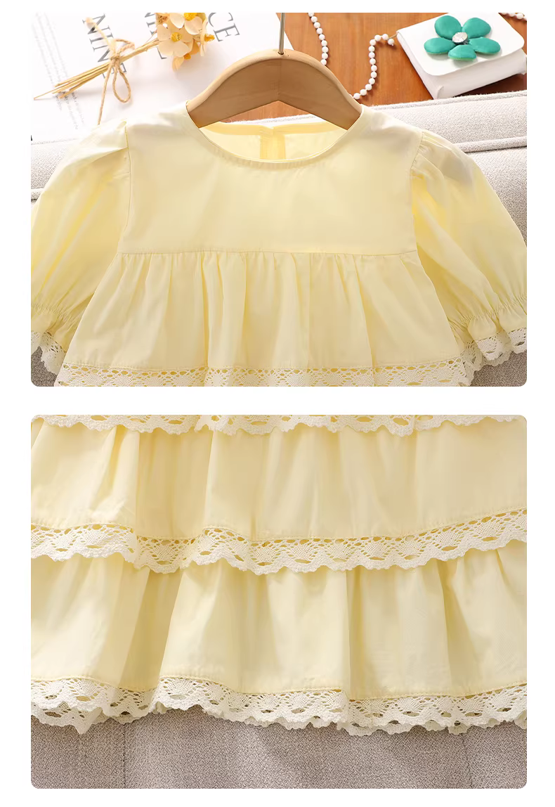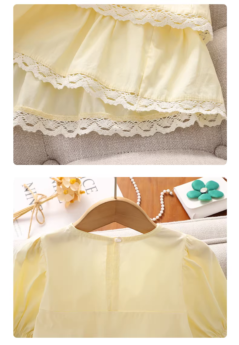 - Váy bé gái kiểu Pháp tay ngắn, bộ váy bé gái thời trang, bộ váy hai mảnh mùa hè cho trẻ em