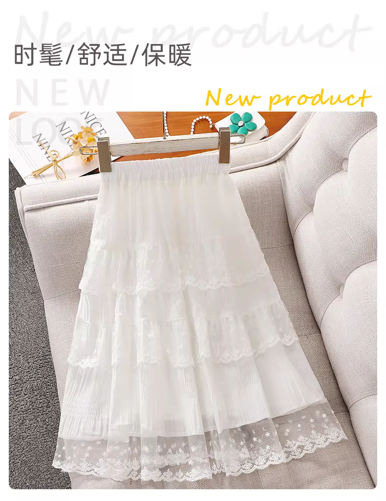 Váy bé gái kiểu thu 2025, váy công chúa ren trắng dành cho bé gái lớn, váy bánh ngọt trẻ em mới, mặc xuân thu