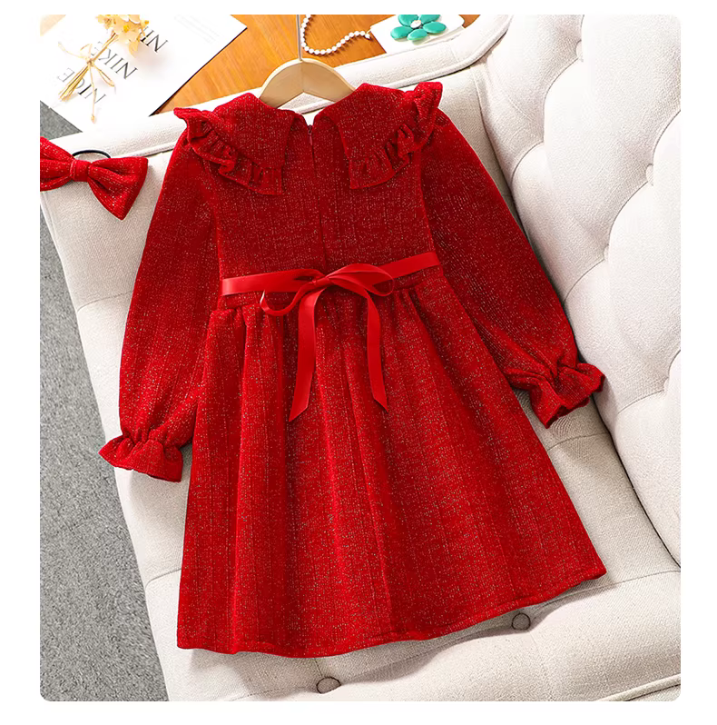 Váy bé gái mùa đông 2025 kiểu mới, váy công chúa lông cừu trẻ em màu đỏ, váy Tết, trang phục lễ hội