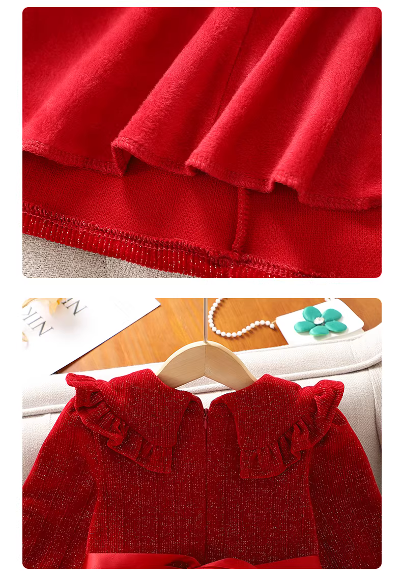 - Váy bé gái mùa đông 2025 kiểu mới, váy công chúa lông cừu trẻ em màu đỏ, váy Tết, trang phục lễ hội