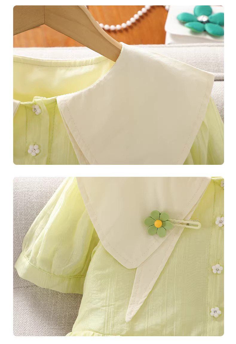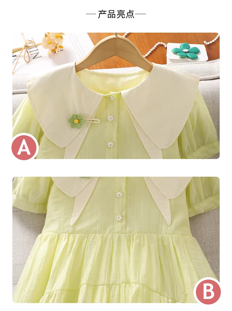- Váy bé gái mùa hè cổ búp bê mỏng năm 2025, váy công chúa ngắn tay mới cho bé gái, váy mùa hè cho bé gái