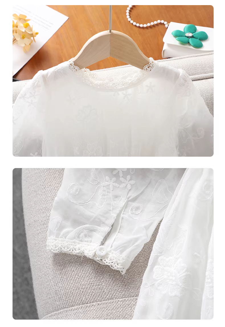 - Váy bé gái phong cách xuân thu, váy công chúa trắng kiểu Pháp, mẫu mới thời trang trẻ em 2025, chân váy ren