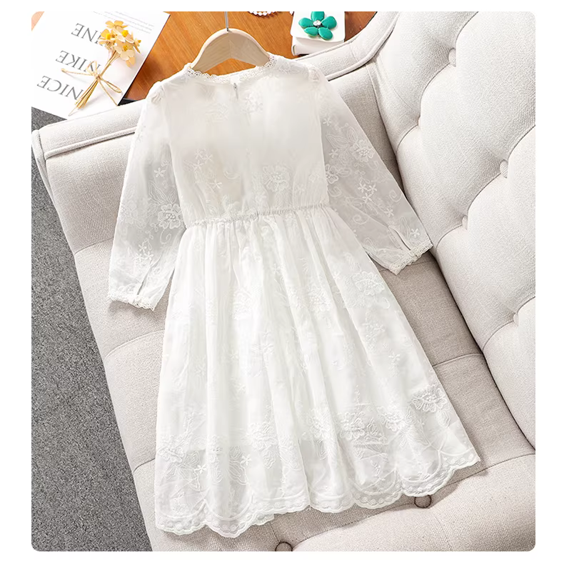Váy bé gái phong cách xuân thu, váy công chúa trắng kiểu Pháp, mẫu mới thời trang trẻ em 2025, chân váy ren