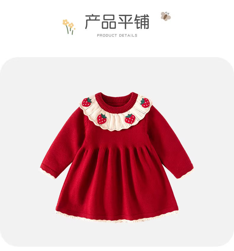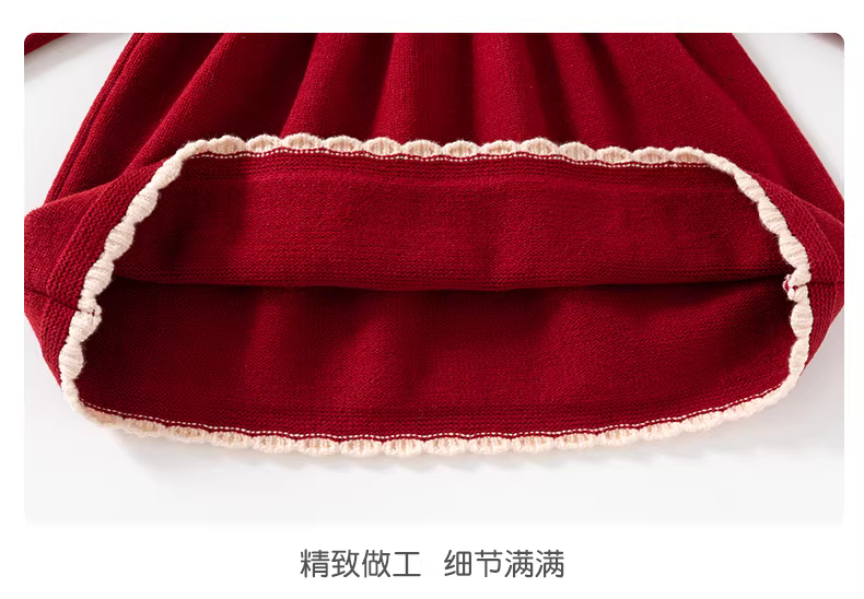 - Váy bé gái, quần áo mùa thu, váy công chúa dệt kim trẻ em sành điệu, váy bé một tuổi, váy dự tiệc sinh nhật, quần áo chúc mừng năm mới màu đỏ