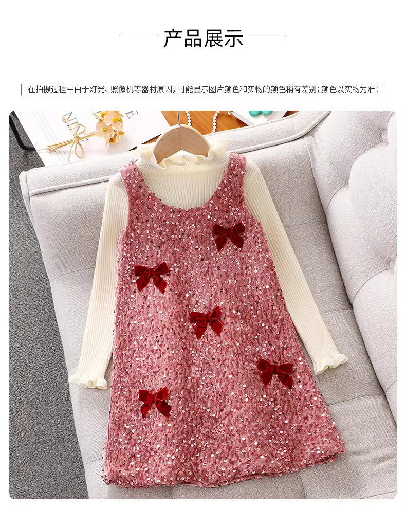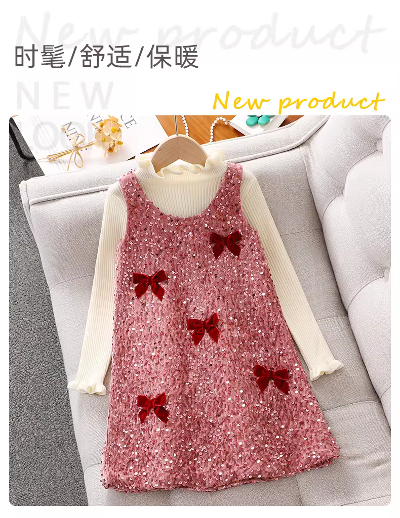 - Váy bé gái, váy công chúa đính sequin nơ mới năm 2025 cho trẻ em, váy áo len thu đông cho bé gái lớn