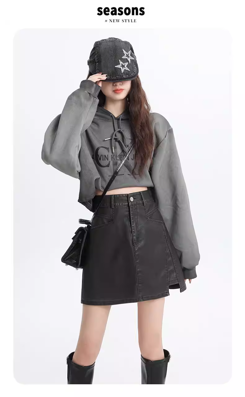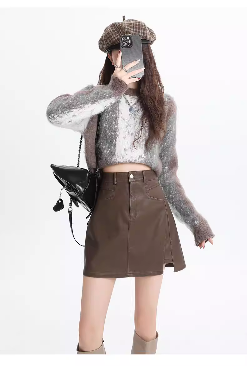 Váy bút chì da PU La Chapelle dành cho nữ, mùa thu đông 2025, kiểu dáng mới, cạp cao, tôn dáng, dáng chữ A, ngắn.