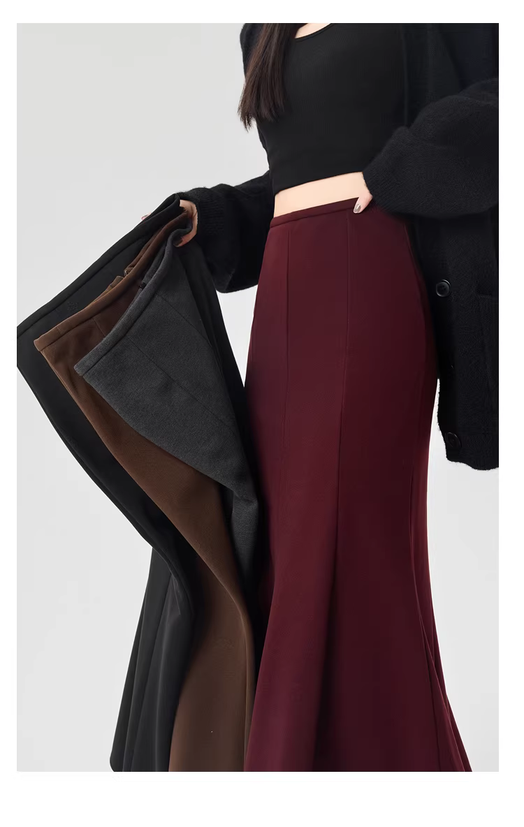 - Váy bút chì len La Chapelle dành cho nữ, thu đông 2025, kiểu dáng mới, cạp cao, dáng chữ A, dài ngang đùi, đuôi cá