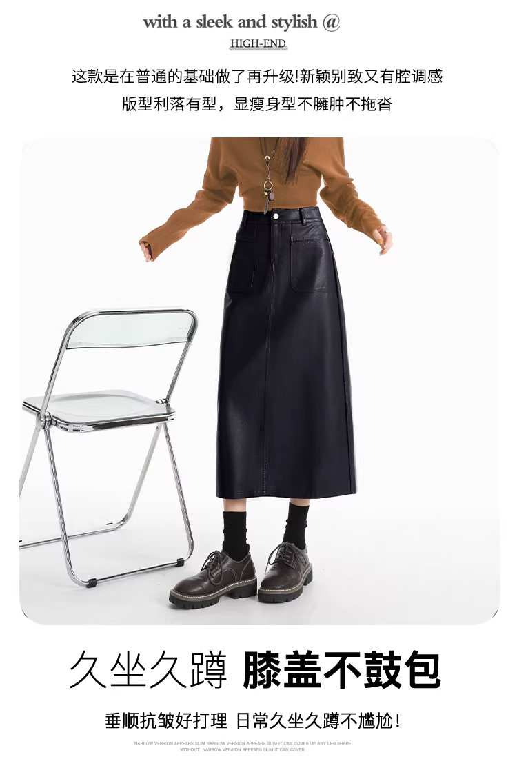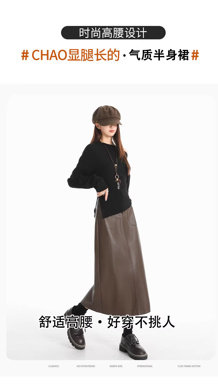 - Váy bút chì màu cà phê La Chapelle dành cho nữ, kiểu mới thu đông 2025, váy da dáng dài vừa phải, eo cao, tôn dáng.