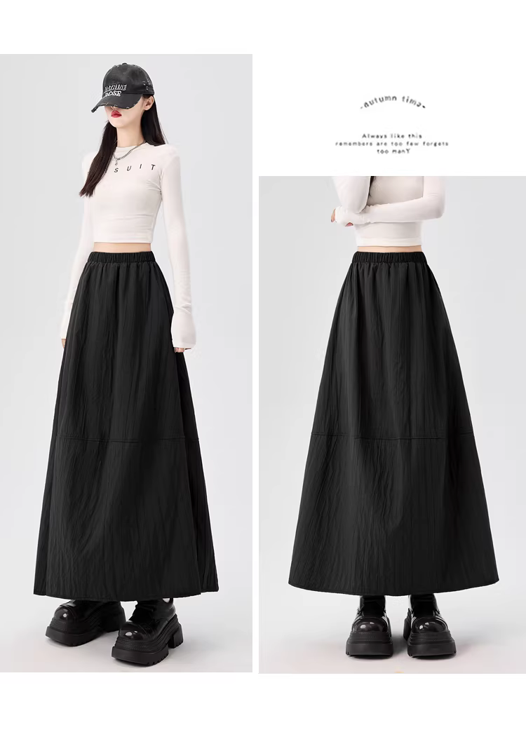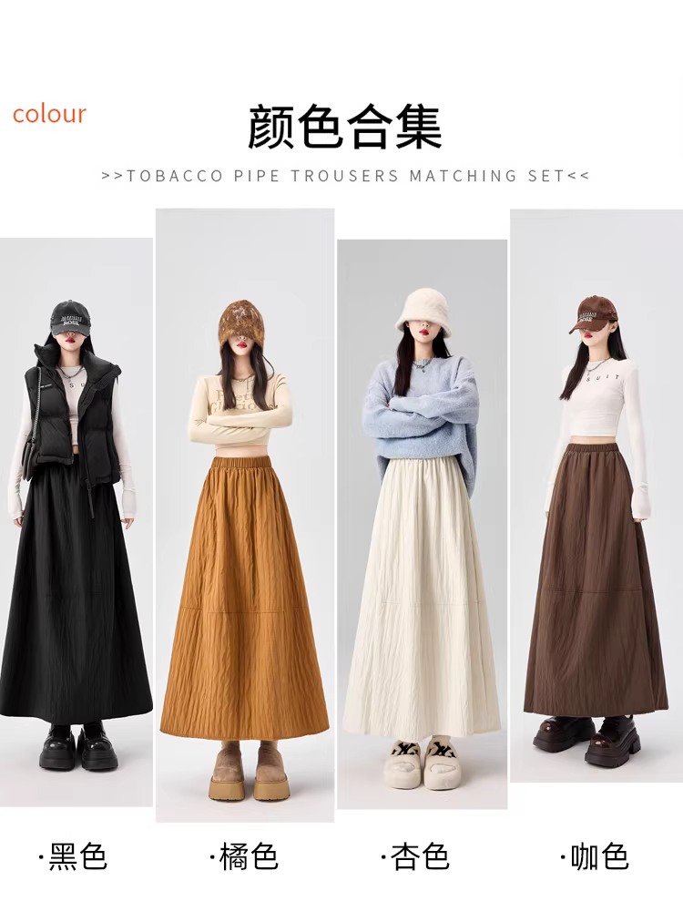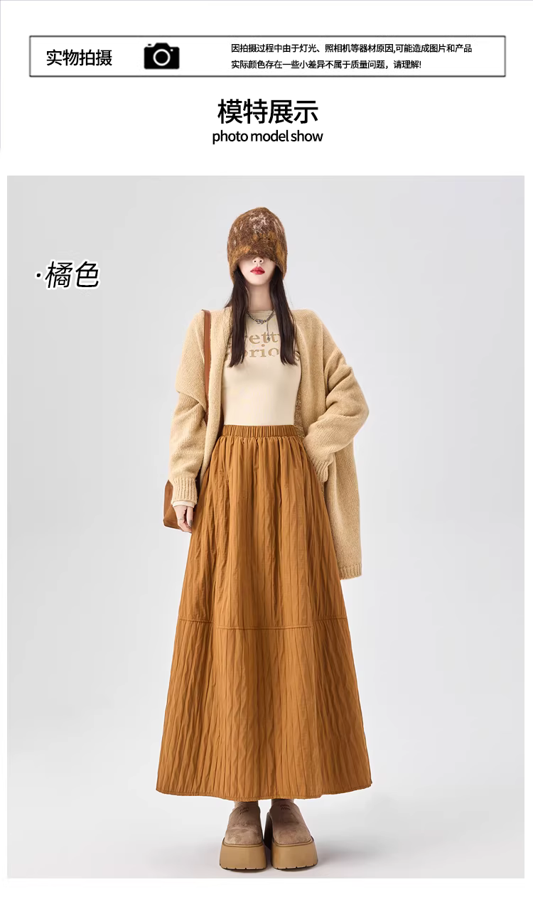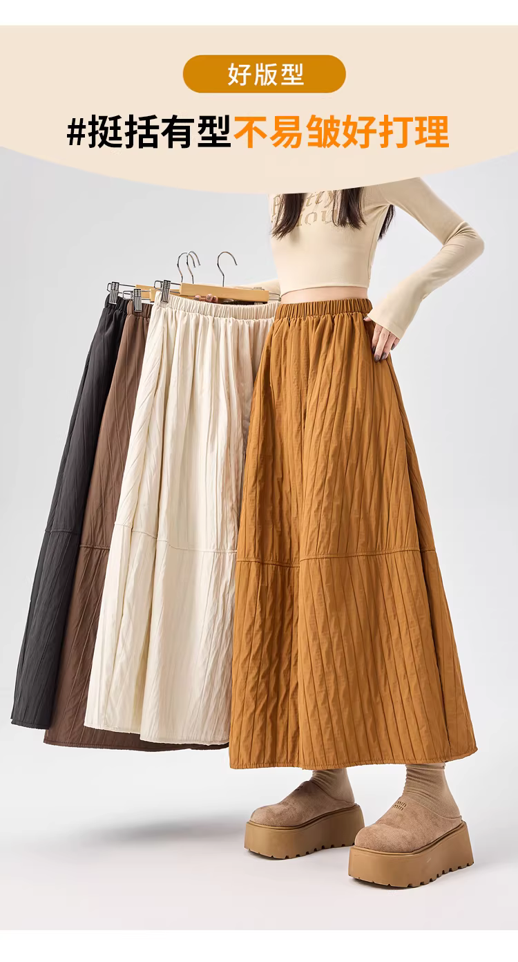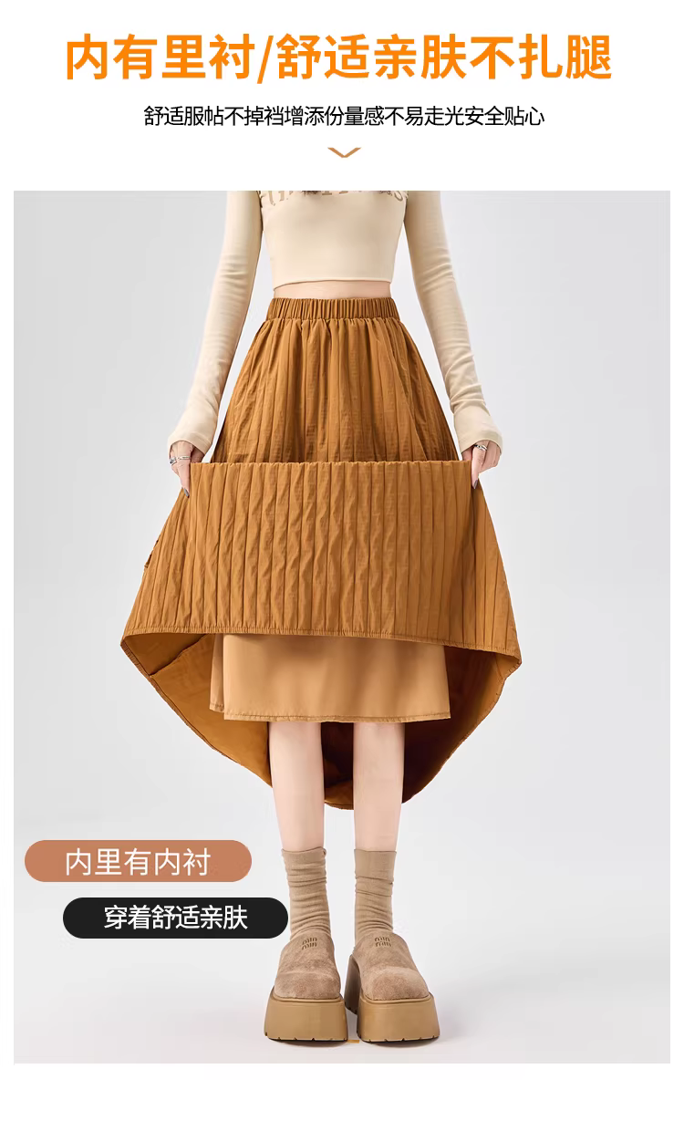 - Váy chắp vá dày dặn lót lông cừu màu cà phê La Chapelle dành cho nữ 2025 váy dài vừa phải lưng cao kiểu chữ A mới mùa thu đông