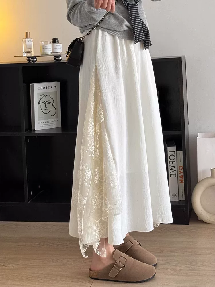Váy chắp vá ren cho nữ, cỡ lớn mùa hè, thiết kế dành cho người có thân hình cong, eo cao, che hông, giảm béo, thân hình hình quả lê, váy chữ A.
