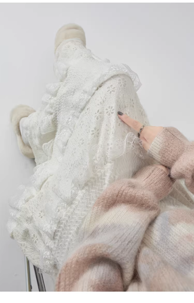 Váy chữ A cao eo, viền ren La Chapelle dành cho nữ, mẫu mới thu đông 2025, dáng xòe xếp tầng, dài ngang đùi