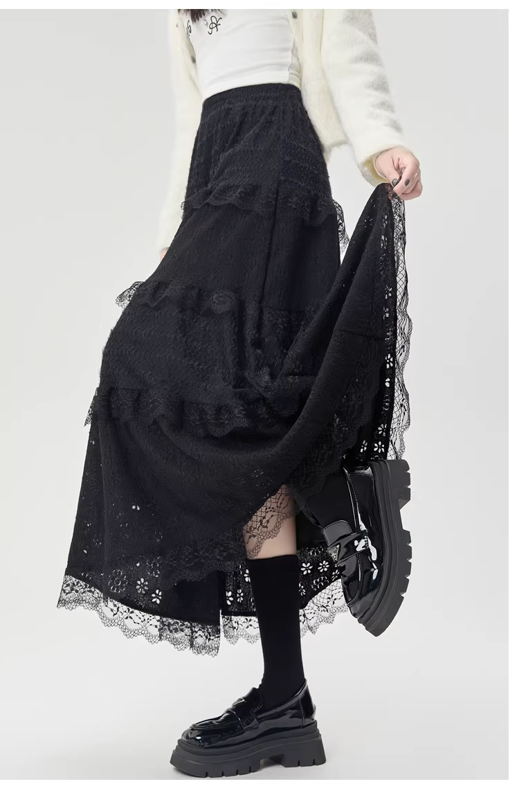 - Váy chữ A cao eo, viền ren La Chapelle dành cho nữ, mẫu mới thu đông 2025, dáng xòe xếp tầng, dài ngang đùi
