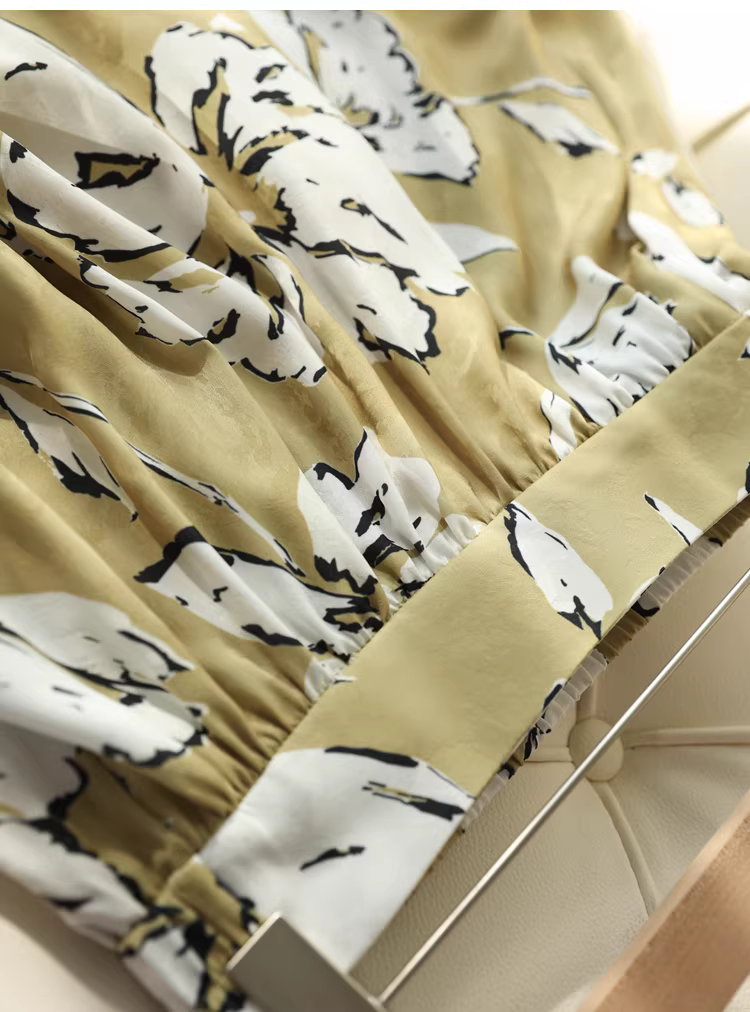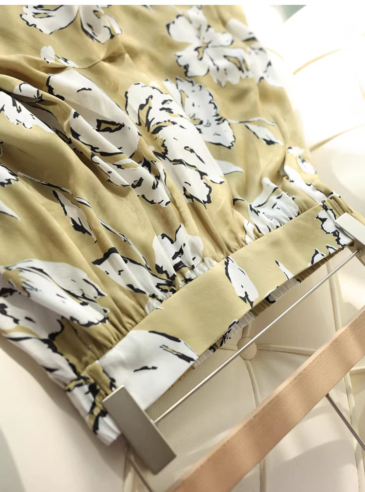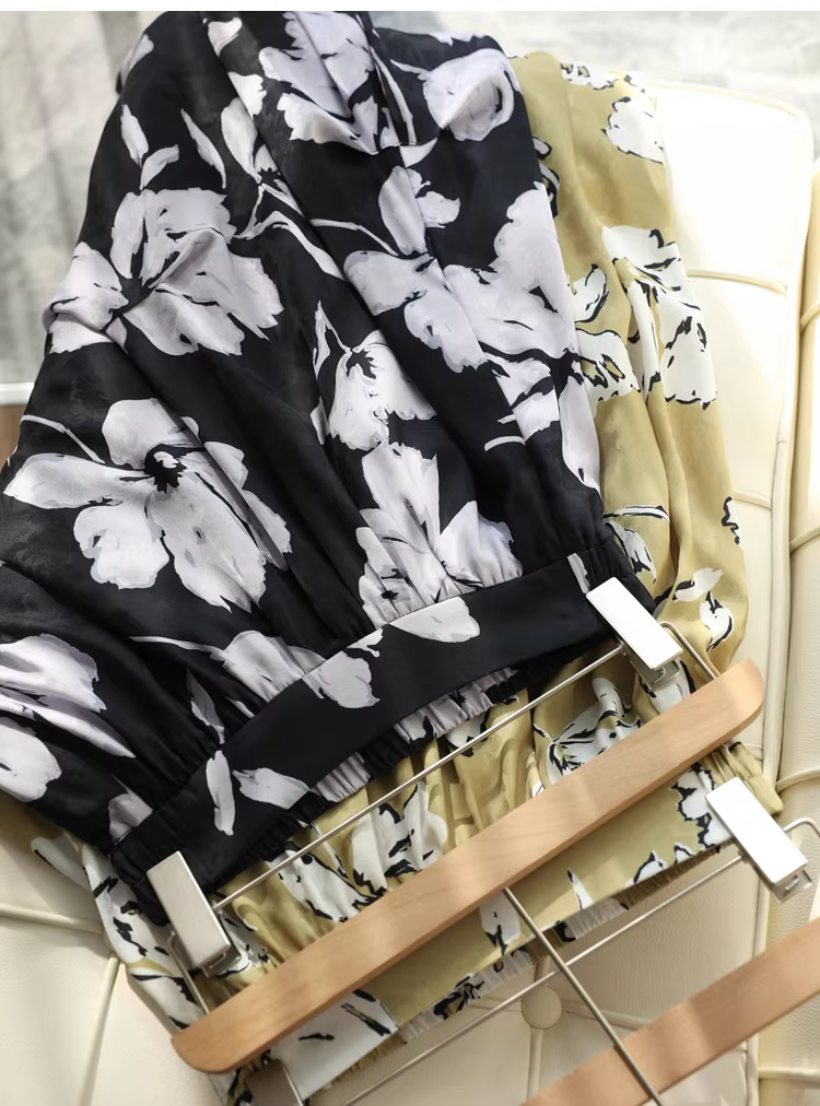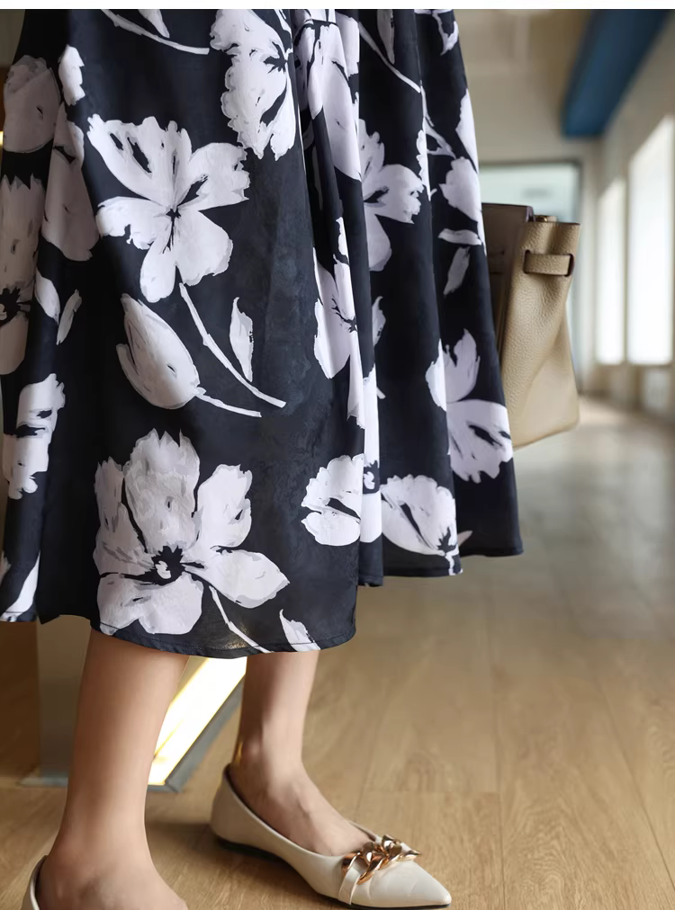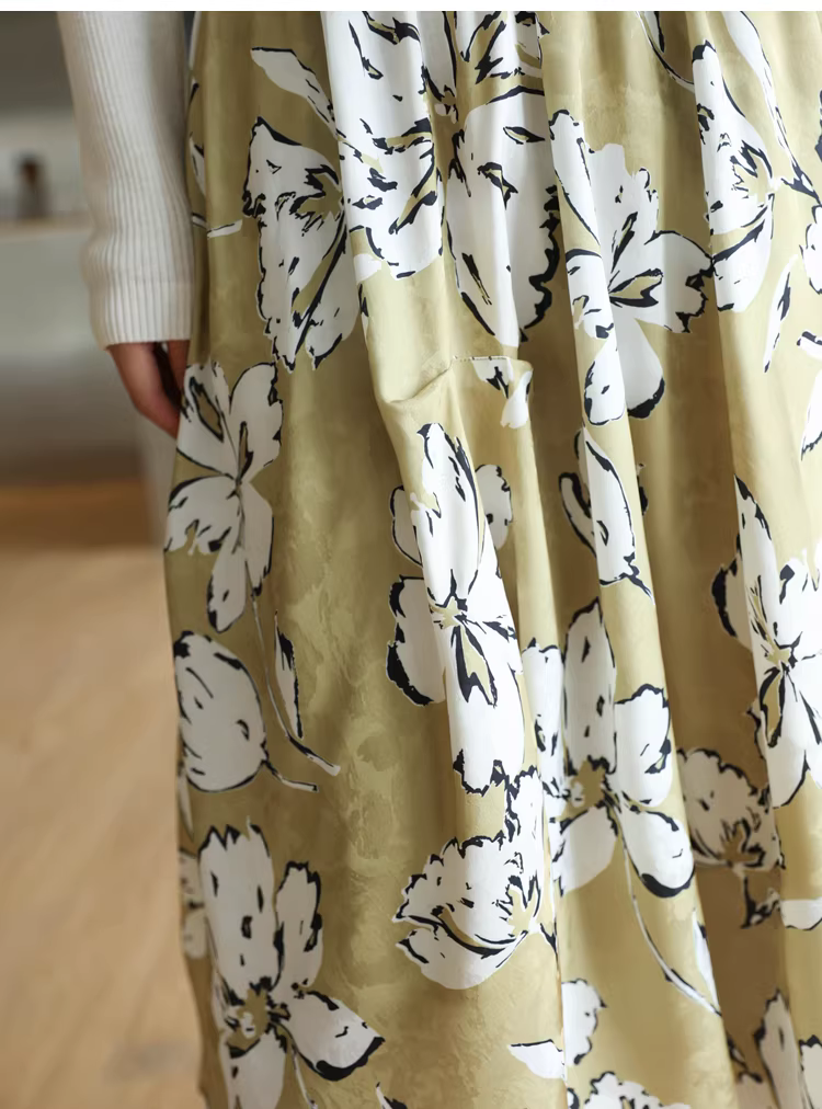 Váy chữ A che hông kiểu Pháp thanh lịch in họa tiết hoa anh túc lãng mạn dành cho nữ đầu thu phong cách mới