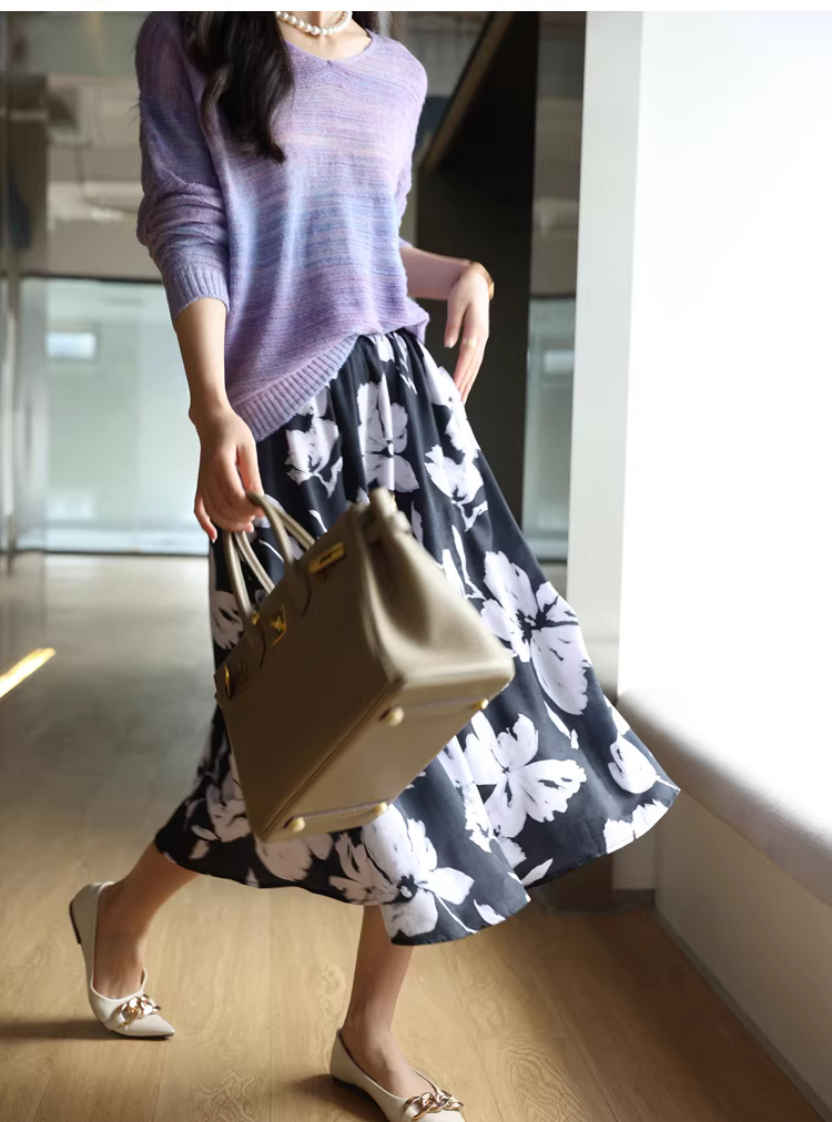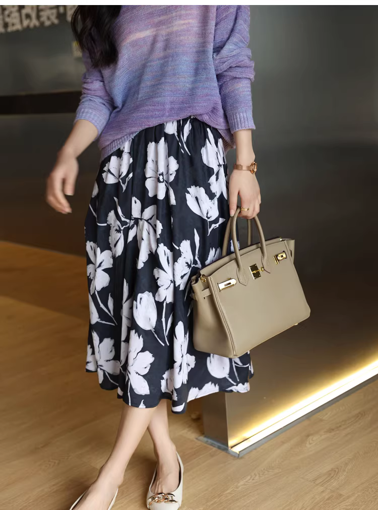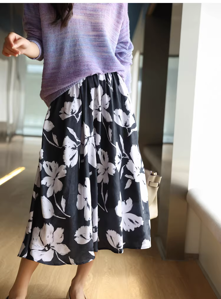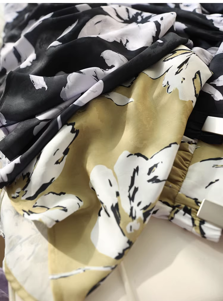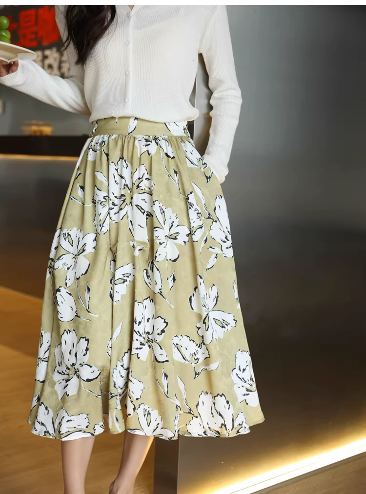 - Váy chữ A che hông kiểu Pháp thanh lịch in họa tiết hoa anh túc lãng mạn dành cho nữ đầu thu phong cách mới