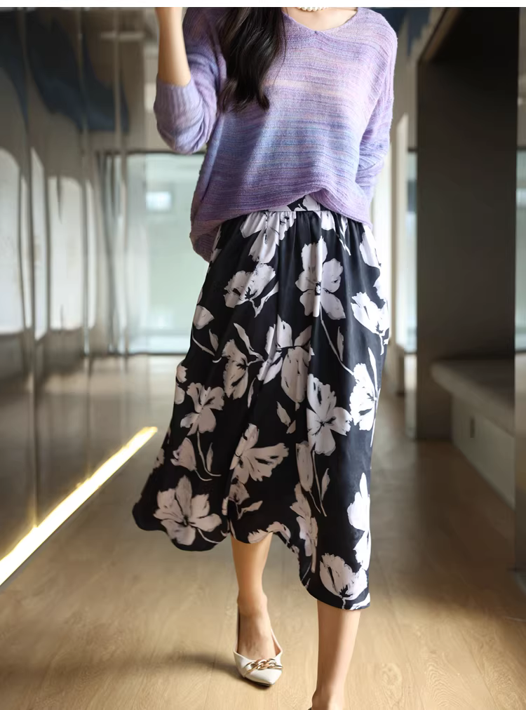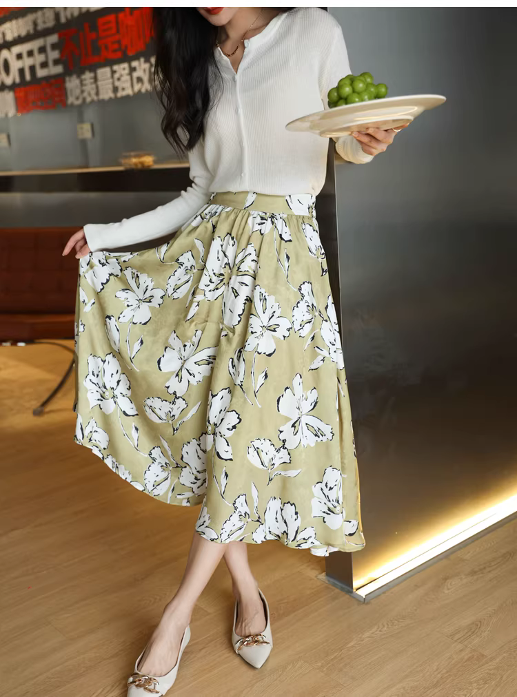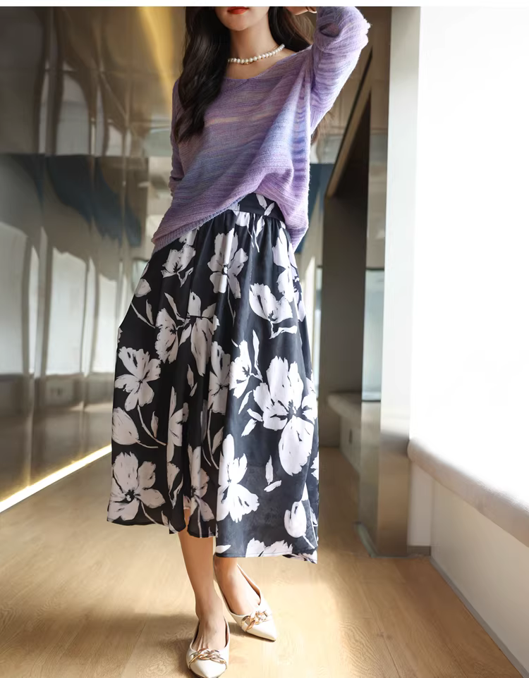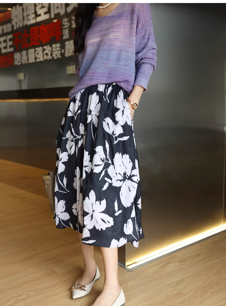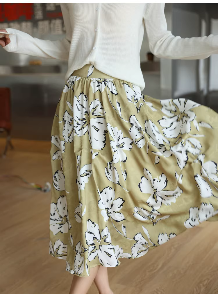 - Váy chữ A che hông kiểu Pháp thanh lịch in họa tiết hoa anh túc lãng mạn dành cho nữ đầu thu phong cách mới