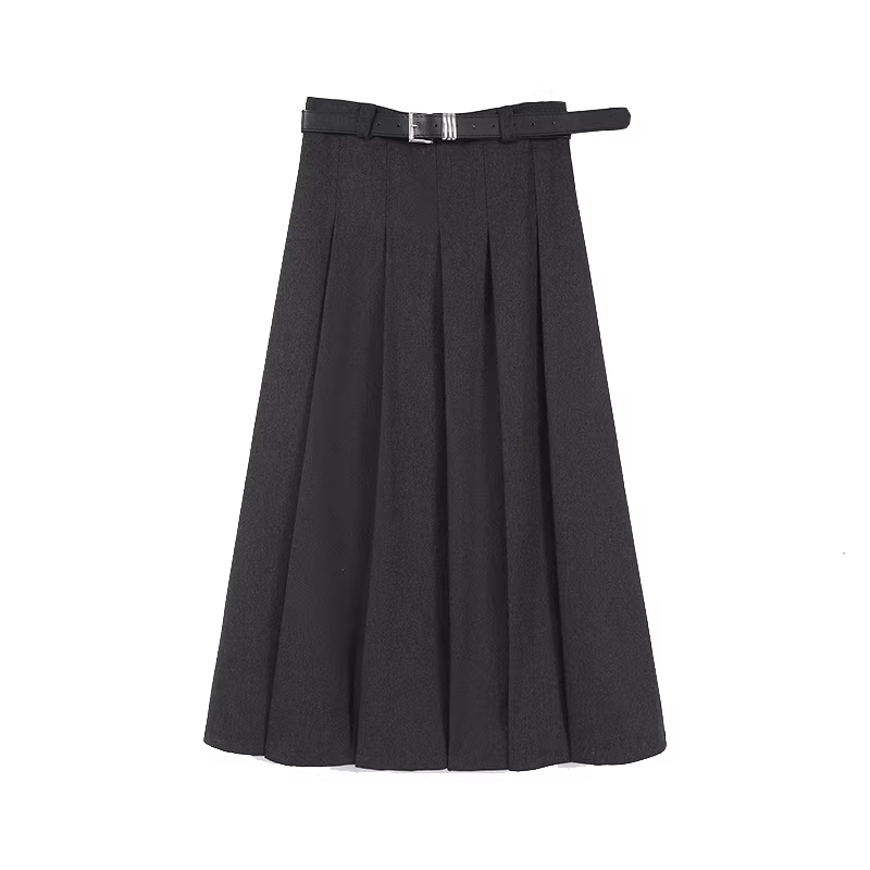 - Váy chữ A dáng quả lê màu cà phê xếp ly nữ mùa thu đông 2025 kiểu retro mới dài trung bình