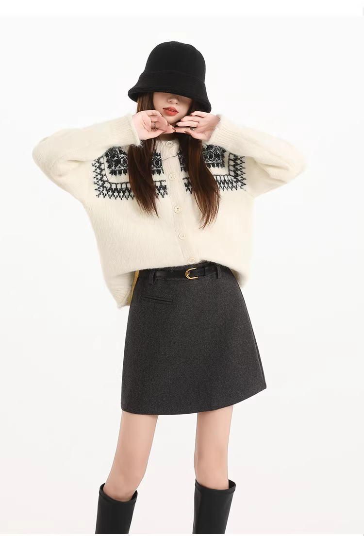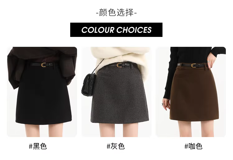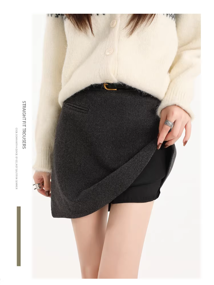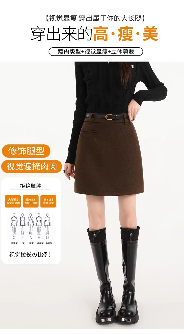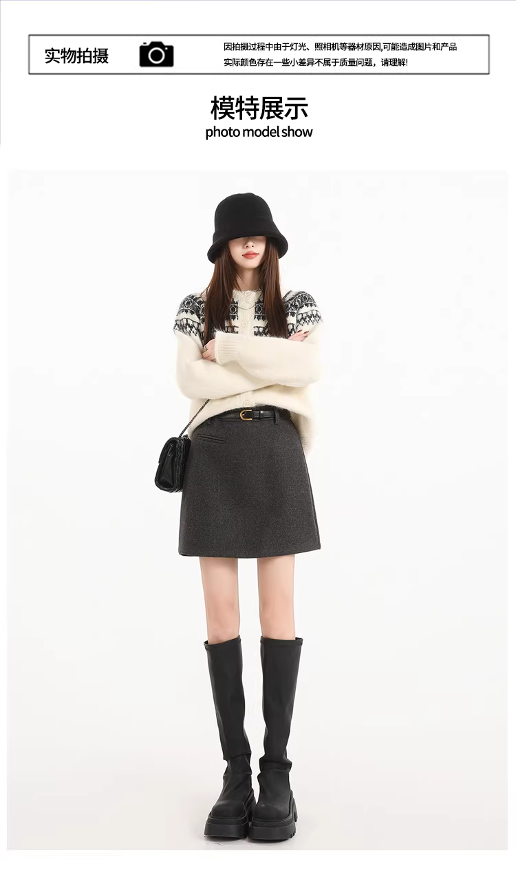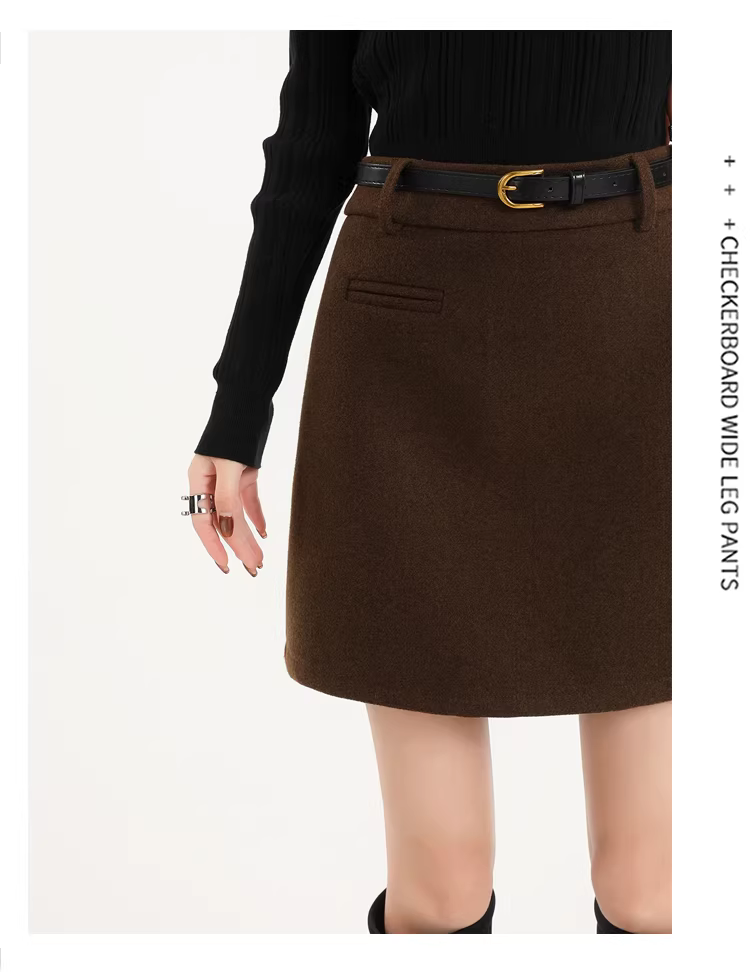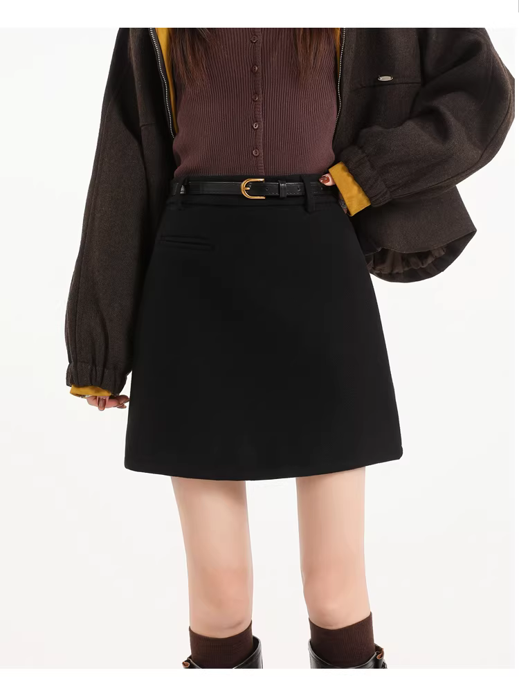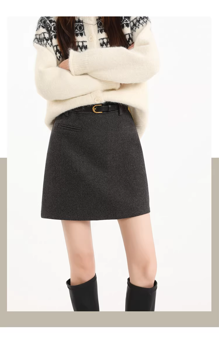 - Váy chữ A len màu xám La Chapelle dành cho nữ 2025, kiểu mới thu đông, cạp cao ôm hông, ngắn
